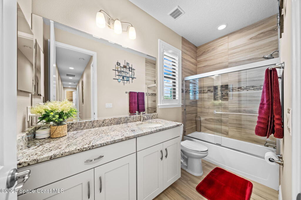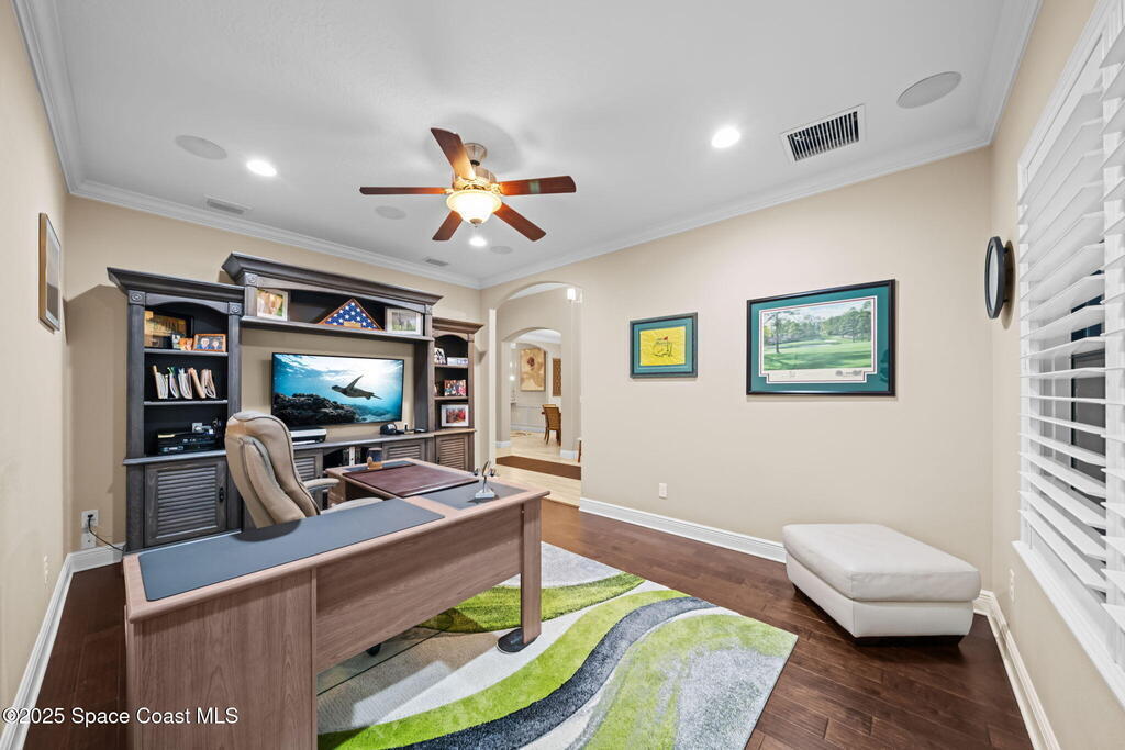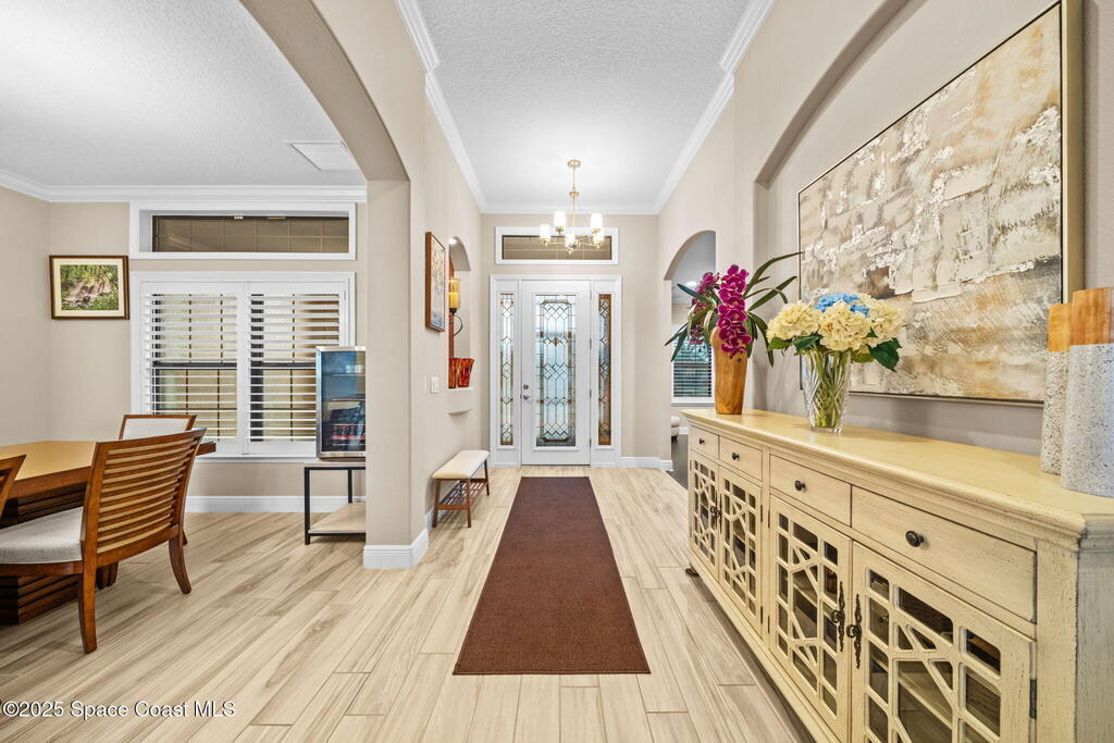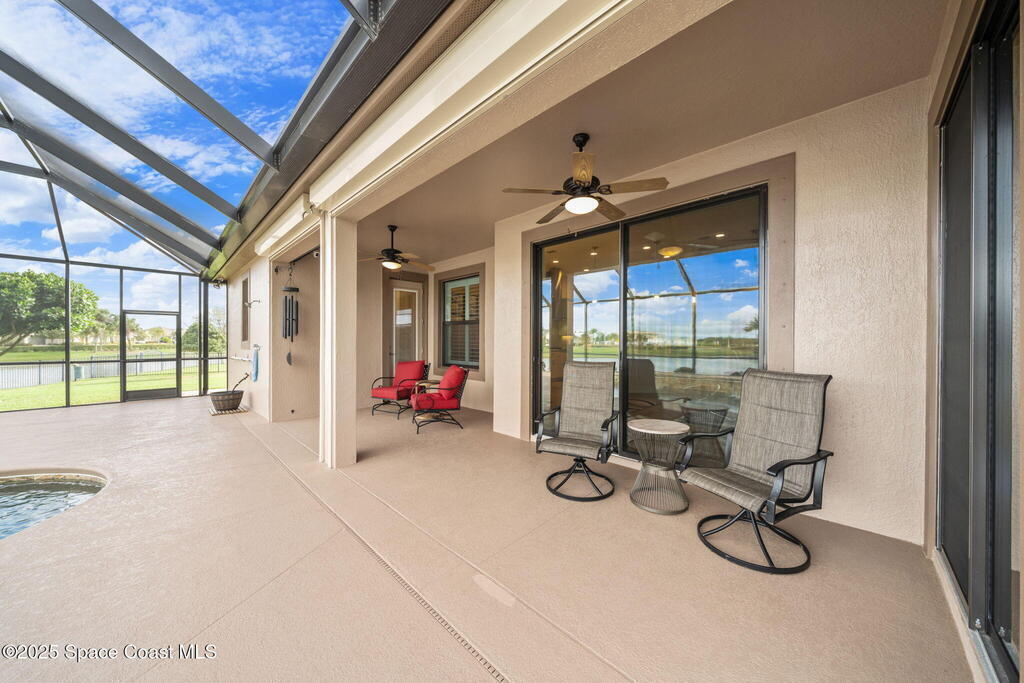 RARE FIND! Experience luxury, lakeside living in the heart of Viera's sought-after Kerrington community. This stunning 4-bedroom, 3-bath Montgomery floor plan offers 2,798 sq. ft. of beautifully designed living space on an expansive 0.35-acre lot, showcasing peaceful wide lake views and an elevated level of finish rarely found.Step inside to find beautiful plank tile flooring throughout most of the home, engineered hardwood in the office, elegant crown molding throughout, recessed lighting, and thoughtfully curated upgrades at every turn. The chef's kitchen impresses with upgraded granite countertops, white soft-close cabinetry, under-cabinet lighting, and an open layout perfect for entertaining.The split floor plan offers spacious bedrooms, generous storage, and a large utility room (washer & dryer included). Additional enhancements include impact windows with tinting, a Generac whole-house gas generator, speaker system, Ring doorbell and cameras, ceiling fans throughout, ...