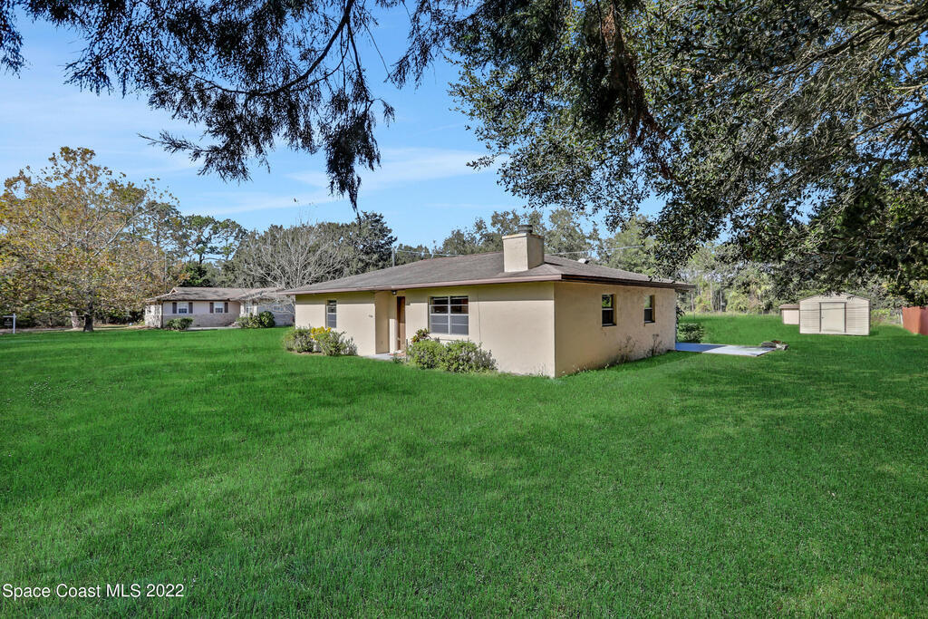 NEW ROOF! Come see this solid concrete block construction, well maintained, original owner 2 bedroom, 2 bath country home complete on 1.16 acre with a 4 bay outbuilding/carport/garage/workshop metal building with a new metal roof coming soon! Within walking distance to the North Brevard Horse Arena. A/C 2021, NEW ROOF 2025,, updated hot water heater, updated well pump with lifetime guarantee, 24x48 shed and 14x16 shed conveys. You'll love spending time outside. Plenty of room to put in a pool. Less than 5 miles to I-95 Deering Pkwy exit 231 near the Farmton Local Plan. 6 miles to Downtown Mims, 11 miles to Downtown Titusville. 30 minute commute to NASA Kennedy Space Center, SpaceX, & Blue Origin. 30 minutes to Cape Canaveral National Seashore, New Smyrna Beach, & Playalinda Beach. 1 hour to Disney World, Universal Studios, and Sea World. Horses allowed.
