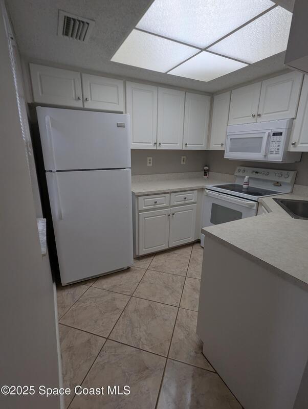 Charming and cozy, this fully tiled first-floor condo is located in a well-cared-for community. The bright kitchen features sleek white cabinets and a handy pass-through, making meal prep a breeze. Step through the sliding glass doors to your own screened porch, where you can relax and enjoy the lovely green view. With water, basic cable, and internet included, plus a reserved parking space and access to a community pool, this condo offers convenience and comfort. Centrally located, you'll be just minutes from shopping, dining, L3 Harris, Florida Tech, Eastern Florida State College, and a short drive to the beach. Ready for immediate move-in--schedule your showing today!