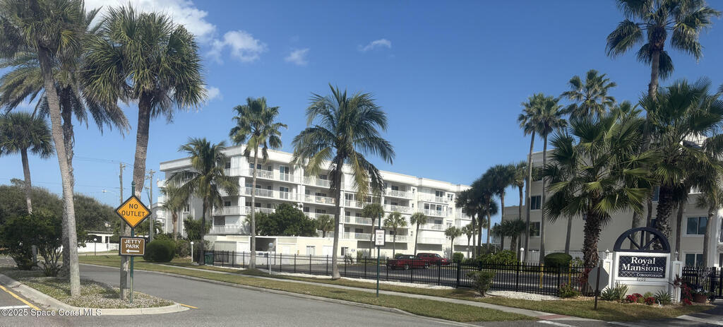 Royal Mansions gated community is a resort style condominium. This 1 bedroom beachfront condo (that can sleep 6) is on the first floor offering unbeatable convenience, no stairs--just feet from direct beach access, the community's sparkling pool, grilling area, community clubhouse, bathrooms and private showers. Enjoy a spacious, south-facing wraparound porch optimal for relaxing, dining, or soaking in the sun with that coastal breeze. Effortless access to Florida's outdoor living space makes this unit the perfect blend of comfort and ease for beachside living. Enjoy outstanding proximity to Kennedy Space Center, shuttle launches, Jetty Park Beach, Port Canaveral and the Florida Surf Museum, just to name a few! Need a getaway on the beach, how about living in this low maintenance perfect sized condo or maybe you would like to use it as an investment property...1 week minimum rentals make it ideal. Make you showing in person, guided tour, or a video phone conference for convenience.