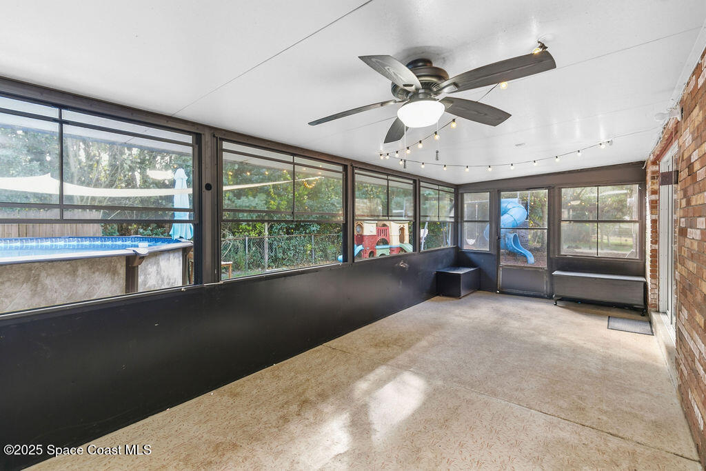 Welcome to this beautifully updated home in Mims, tucked away on a quiet dead-end street. NO HOA!!! With four bedrooms, two baths, a two-car garage, and an extra long and wide driveway, this open floor, split-plan design offers both space and comfort. Peace of mind comes with the many thoughtful upgrades: storm-rated windows and doors, plumbing, electrical panel, added insulation, a 2025 water heater, water treatment system with charcoal and carbon filters, and a newer septic system. The 3-year new kitchen boasts granite counter tops, thoughtfully designed cabinets with pull-out drawers, turntables, and soft-close features, a breakfast bar, and stainless-steel appliances. Beyond the kitchen, the home opens into formal dining and living areas, an indoor laundry room with plenty of cabinetry, a bonus enclosed room under air adds even more versatility, complete with its own refrigerator, ceiling fan, electric fireplace, and extra window unit AC. The rear porch offers a