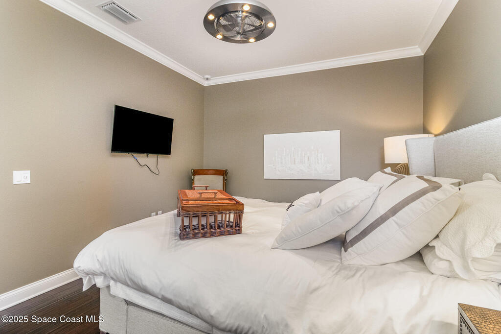 A master class in luxury living! This 4 bedroom 3 bath 3 car garage gated villa is ideally located steps from the world famous Cocoa Beach! Upscale finishes throughout! Marble and wood floors,. Bright and airy chefs kitchen with butlers pantry. Custom cabinets and tops with gas stove and commercial quality appliances! Overlooking the spacious living area featuring a cozy gas fireplace! Soaring ceilings with natural light pouring in from above. Attention to detail will be appreciated here. Solid wood doors, enhanced trim package with crown molding through out. Stunning entry staircase sets the tone! Primary bedroom and bath will pamper you with spa like amenities! Private elevator, whole house gas generator and impact glass for piece of mind! Easy outdoor living in your private courtyard oasis! Heated private pool and spa with remote. Built in gas grill and covered seating! 24 unit community offers an unparcelled combination of comfort and security in an outstanding location!