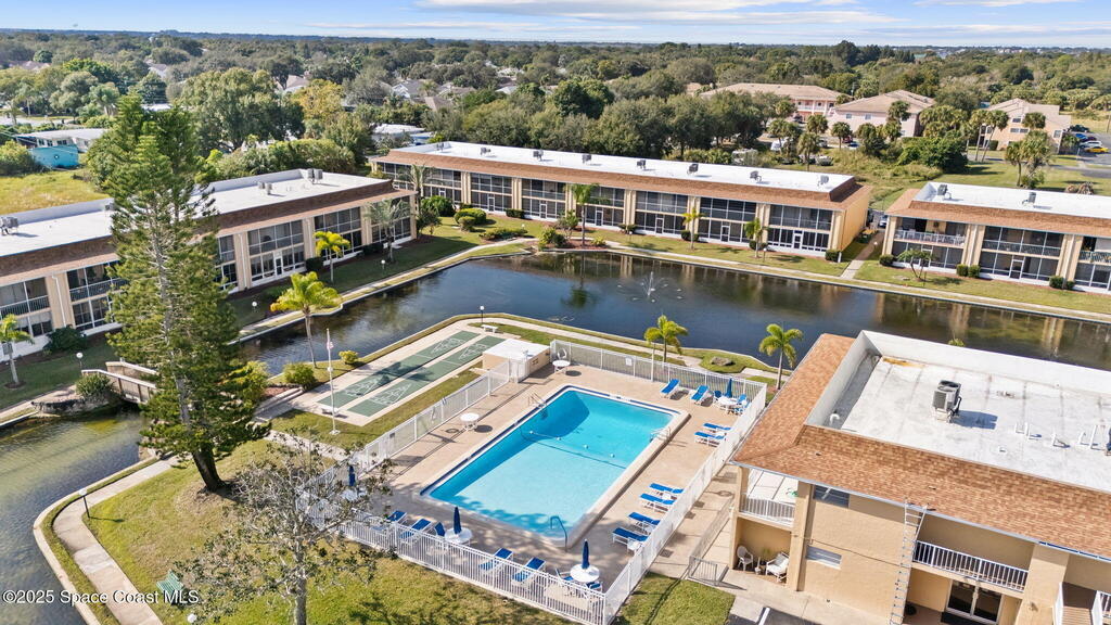 Nestled in the heart of Merritt Island, this quiet and quaint 55+ community offers the best of easy living--enjoy a private pool, shuffleboard, tennis courts, and even a putting green just steps from your door. Inside, you're greeted with abundant natural light, fresh carpeting, a clean and functional kitchen, in-unit laundry, and multiple sliders leading to a private covered patio overlooking the serene community lake. The primary suite includes a walk-in closet and tasteful bathroom upgrades. A spacious guest bedroom provides its own en-suite full bath and plenty of natural light, making hosting effortless and comfortable