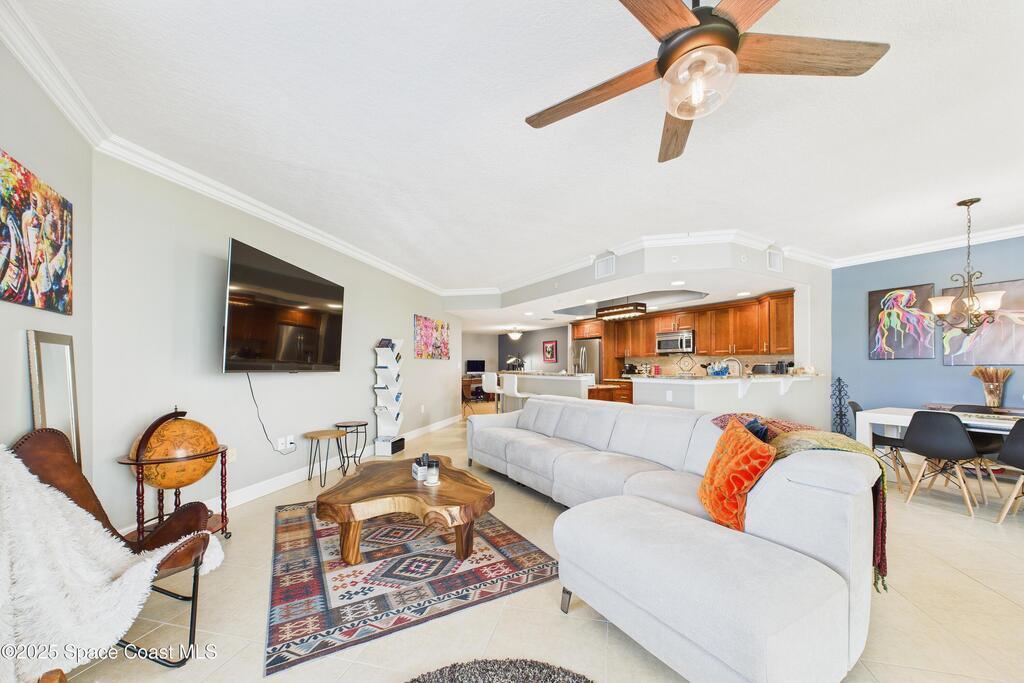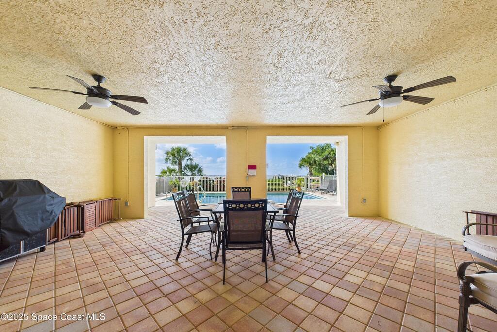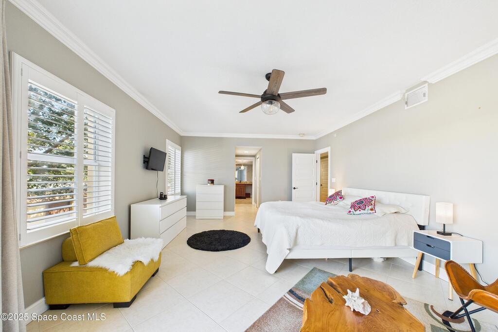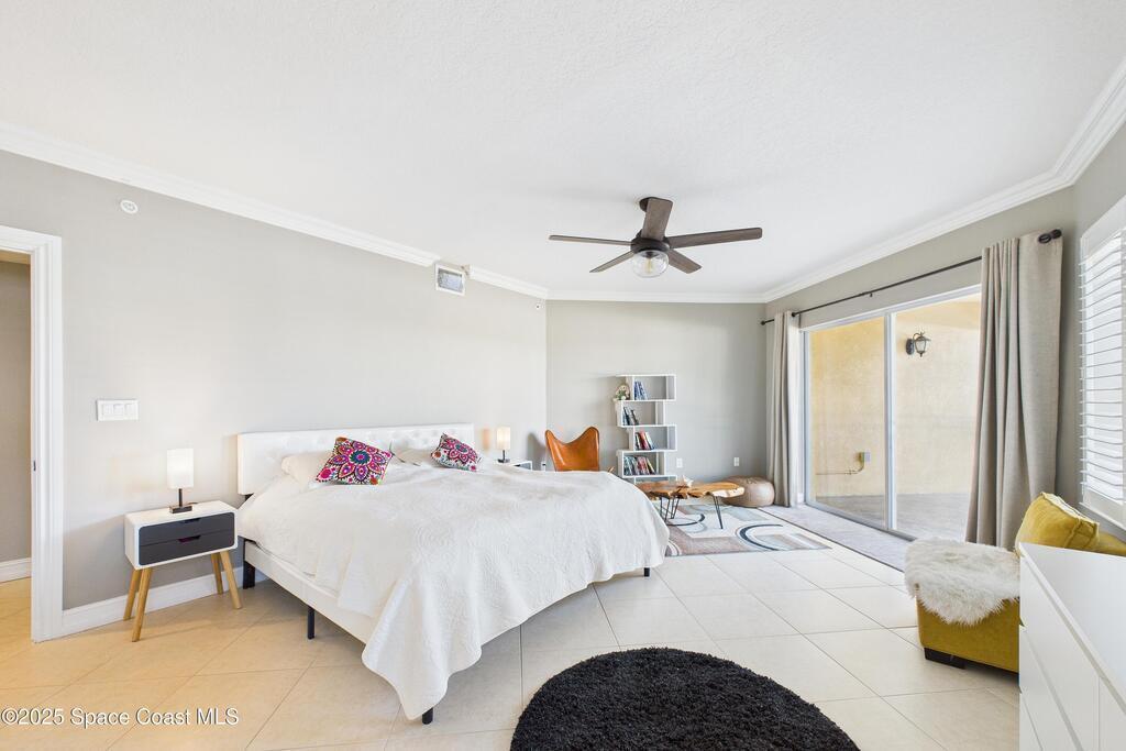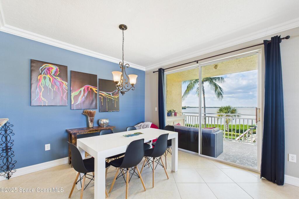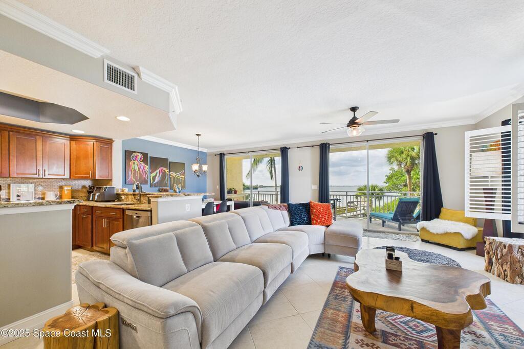 Spectacular DIRECT BANANA RIVERFRONT CORNER UNIT offering breathtaking views and a peaceful waterfront lifestyle in the boutique 11-unit community of Garden Bay. Rare opportunity to own an end unit in this highly desirable Cocoa Beach complex--just a short stroll to the ocean, restaurants, and shopping. Nearly 2,600 sq ft of luxury living with 4 bedrooms, 3.5 baths, and a private 2-car garage. High 8.5' ceilings, crown molding, travertine and wood flooring (no carpet), and impact windows with plantation shutters throughout. The gourmet kitchen boasts granite countertops, custom cabinetry, tile backsplash, and newer stainless appliances overlooking the water. Spacious owner's suite features double walk-in closets, private balcony, and spa-inspired bath with jetted tub and marble shower. Each guest bedroom has its own ensuite bath for privacy and comfort.