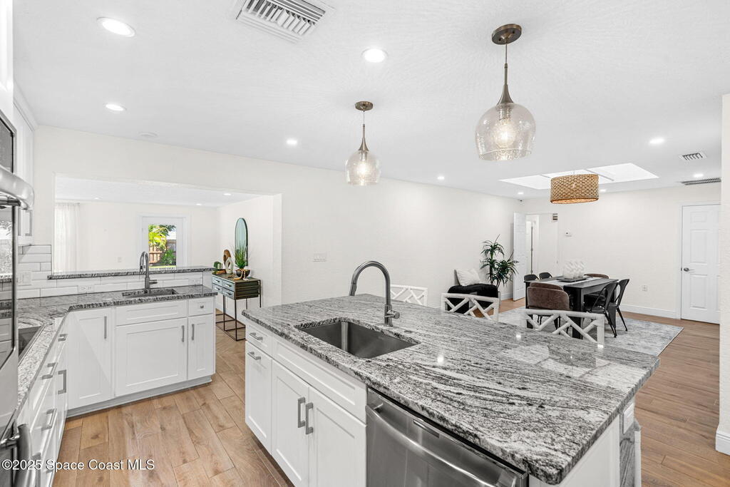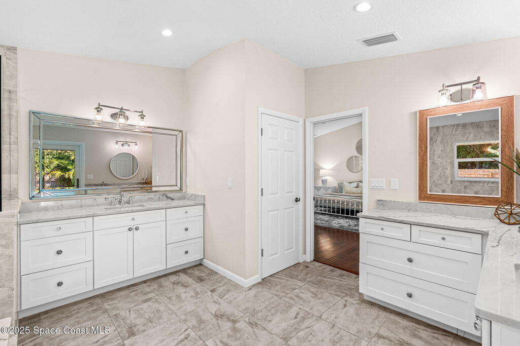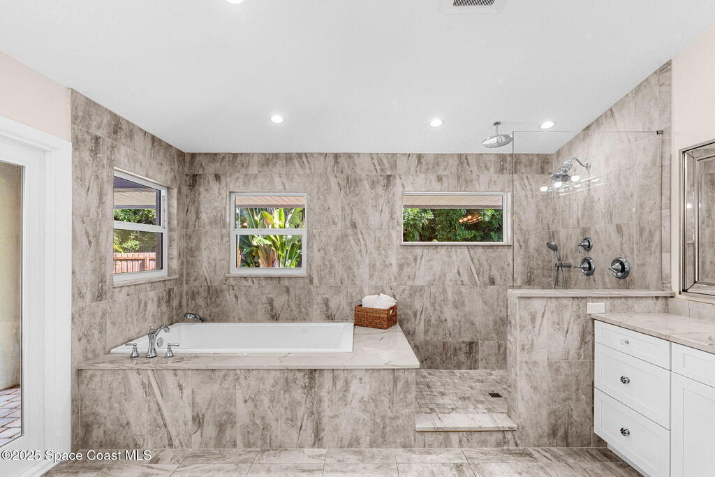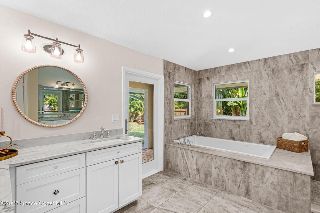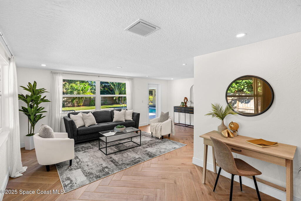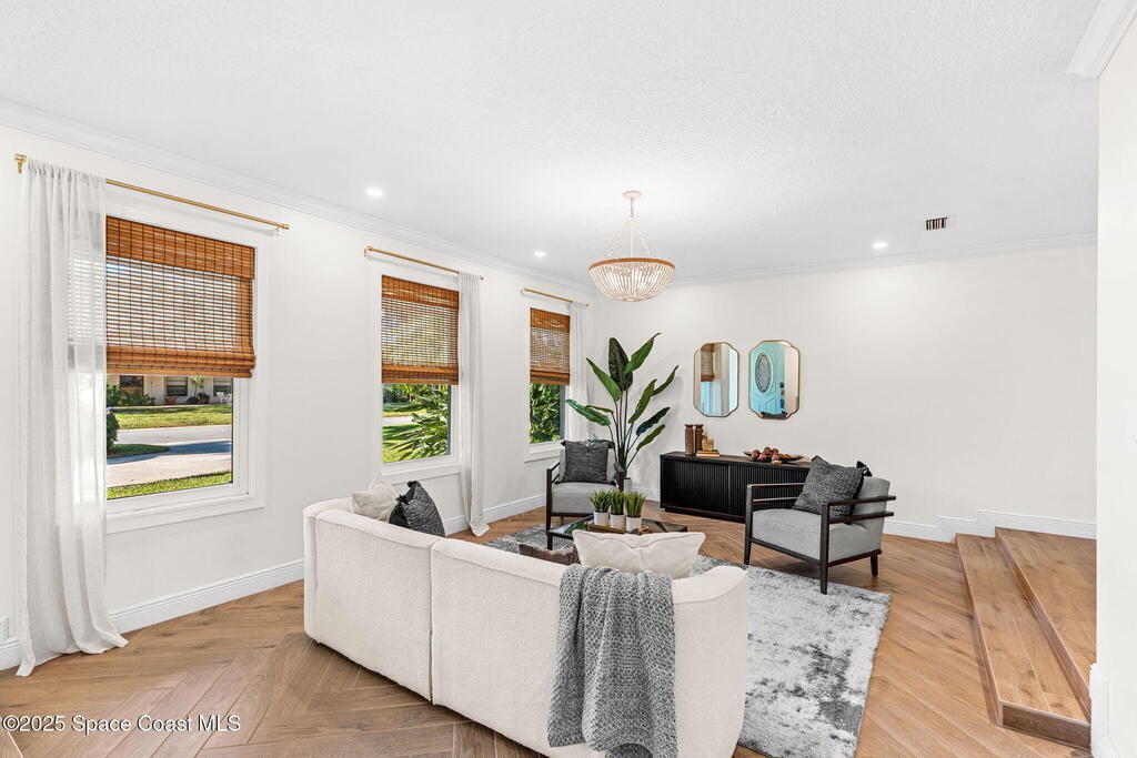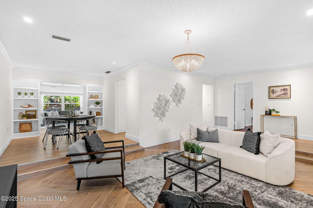 Spacious Concrete Block Indialantic custom pool home--crafted for entertaining and coastal living! Over 3500 sq ft, 5BR/4 baths - 2018 addition included Impact-rated windows, guest studio, electrical and plumbing updates, 2 HVAC units & newer roof! Main Living showcases a chef's kitchen that anchors three elegant adjoining living rooms--creating a stunning, seamless flow for gatherings. Massive primary suite is exceptionally appointed with a spa bath featuring gorgeous separate tub and shower, a personal showroom for your wardrobe & French doors that lead to pool. Two of the large secondary bedrooms have full ensuite baths, one is an attached guest quarter with separate private patio and entry. Your fully fenced yard is adorned with mature oaks and lush landscaping, creating a private oasis for outdoor living and entertaining. Your west-facing orientation provides breathtaking Indian River sunsets right from home. Enjoy a coastal lifestyle where you can bike to Brevard's premier beaches