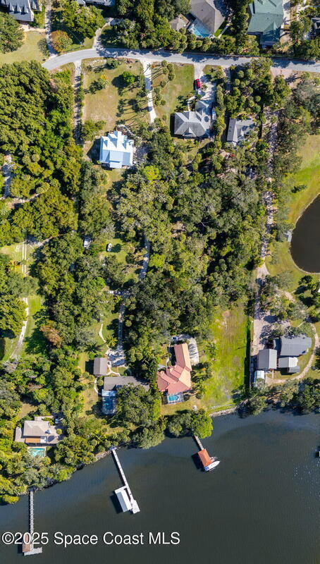 Amazing, Riverfront estate property in highly desirable, quiet Merritt Island neighborhood. Wind your way through beautiful Live Oaks to the already cleared area ready for your brand new custom home! No mangroves to obstruct your view, just open water, nature and dramatic sky shows daily. Permit already approved for a private boat dock and plans available for a magnificent 6,500 sq ft home. A new coquina seawall from 2024 and power run to the rear of the property have you two steps closer to being ready to enjoy this very special Riverfront estate property.