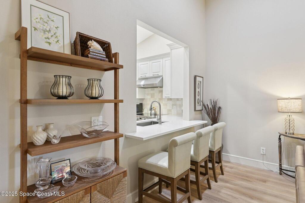 Amazing opportunity to own a beautifully renovated townhome in the prestigious barrier island,ocean to river, Aquarina Beach & Country Club. This fully updated home features new luxuryvinyl flooring throughout, solid-core doors, upgraded baseboards and window trim, a completelyremodeled kitchen with high-end BOSCH appliances including a 36'' Thor range and fullyrenovated bathrooms with upgraded showers and vanities. Additional improvements include a new AC (2025), new ceiling fans, a whole-house water filtration system, hurricane accordion shutters, and a 2021 roof maintained by the HOA. Enjoy the newly renovated enclosed Florida/sun room with built-in cabinetry, perfect for an office, along with peaceful views overlooking the golf course. The garage offers new epoxy flooring, sturdy storage racks, andextra storage pantries. This 2-bedroom, 2-bath split floor plan features vaulted ceilings, makingit truly move-in ready with