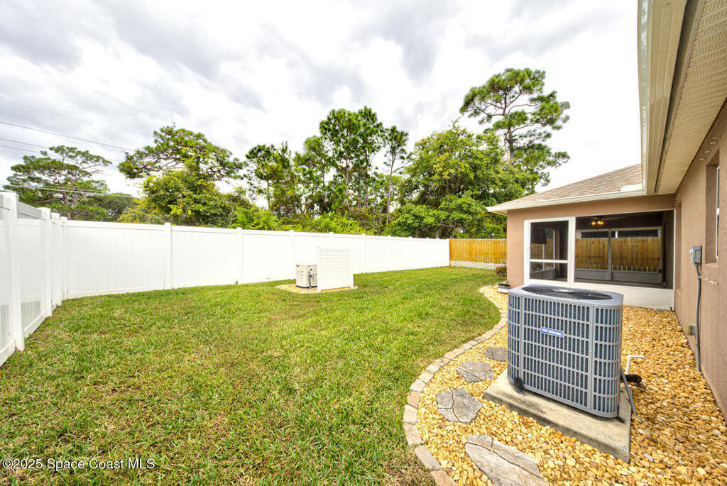 Welcome to this immaculate 3-bedroom, 2-bath, 2-car garage concrete block home located in the well-established Plantation Oaks Community in Titusville. Built in 2017, this spacious home upgrades include: new water heater, new AC system, new whole-home generator, and newly serviced whole-home water filtration system.Inside, you'll find vaulted ceilings, updated fixtures, updated Custom shelving, and luxury vinyl & ceramic tile flooring throughout--no carpet. The owner's suite features a large walk-in closet, soaking tub, & walk-in shower.Step out onto the 200 sq. ft. screened-in back porch and enjoy the privacy of your fully fenced backyard, complete with front and rear sprinkler systems to keep your landscape looking its best.Plantation Oaks low monthly HOA includes access to a spacious clubhouse and a heated pool, perfect for year-round enjoyment. The location is unbeatable--close to Kennedy Space Center, NASA, shopping, theaters, restaurants, and more!