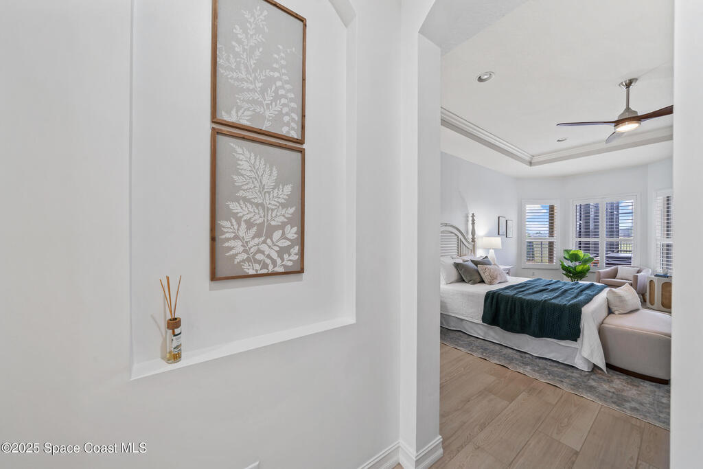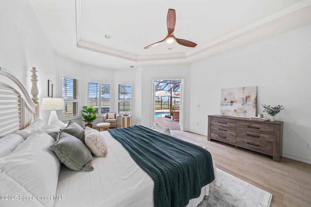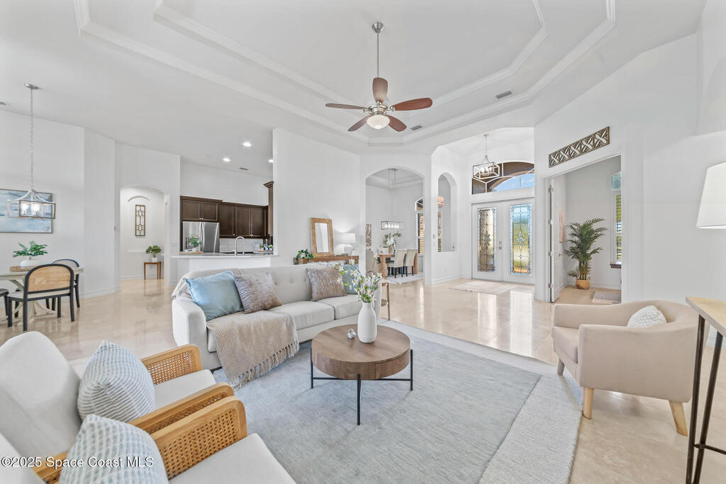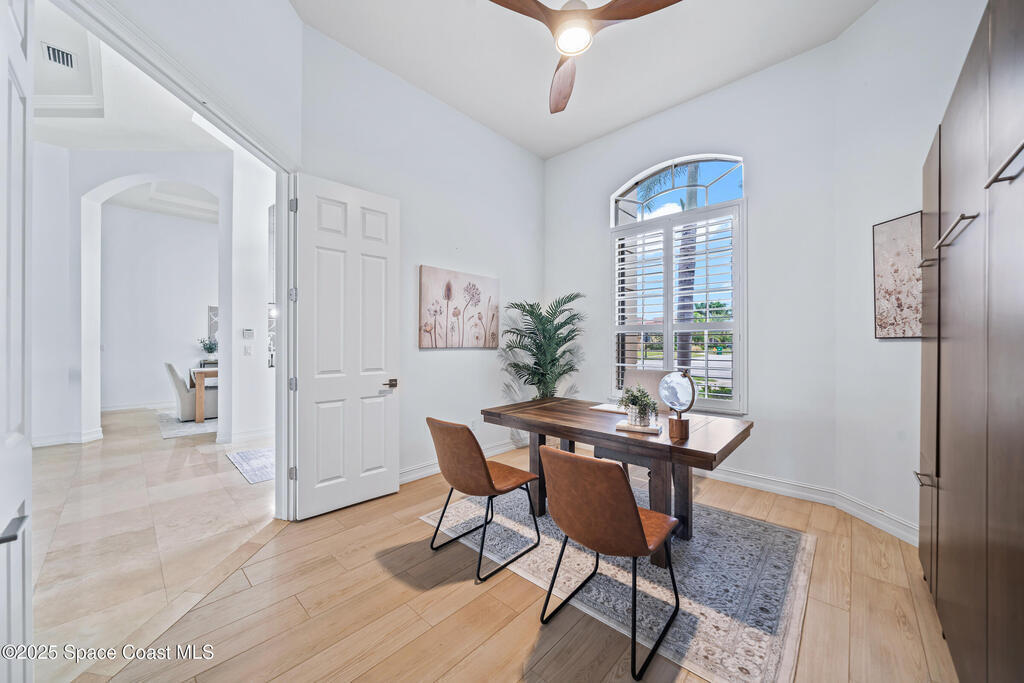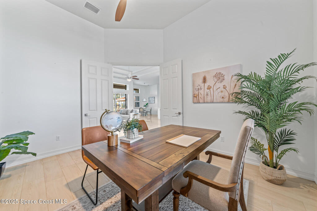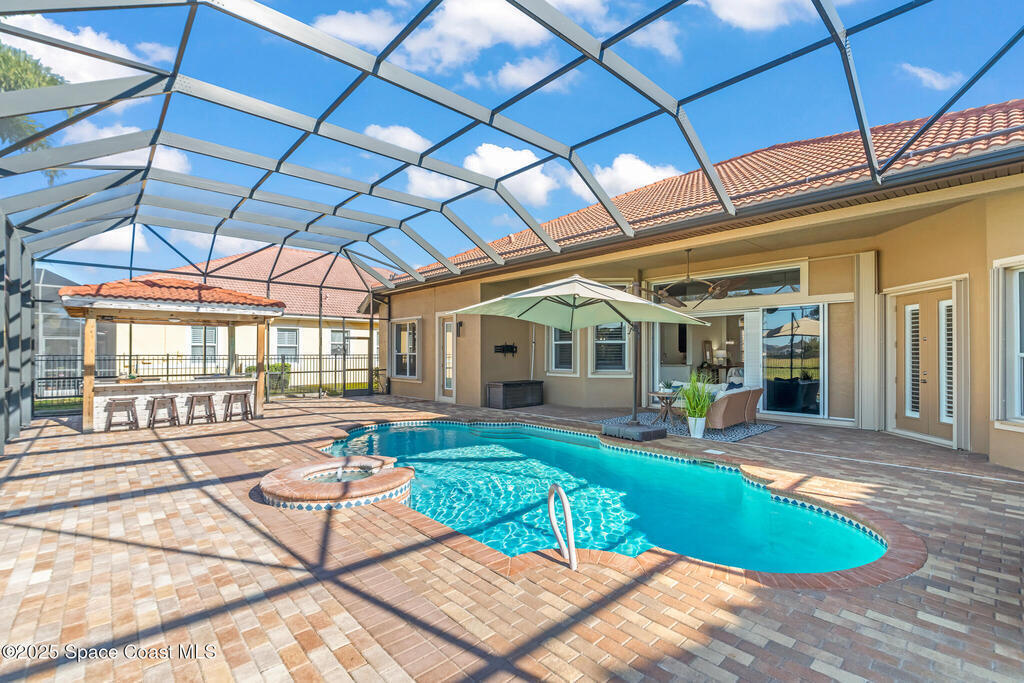 A rare find with the Duran Golf lifestyle is a perfectly positioned home overlooking the 8th hole! This Fairway Lakes beauty is truly above PAR! Inside, the home features 3 bedrooms and 3 full bathrooms, including a spacious primary suite and an additional en-suite bedroom. A versatile flex/office space with a Murphy bed offers the ideal setup for guests or work-from-home convenience. The expansive screened outdoor area is made for Florida living, complete with a solar-heated pool, outdoor kitchen, and stunning golf course views. Additional highlights include a tile roof, circular driveway and an American Home Shield warranty already in place for the new owners. Golf cart to the Duran Golf Club or to the Viera Avenue for dining and endless entertainment!This home is in the cul-de-sac which is perfect for overflow parking or easy access to the golf course!Close to hwy 95, 25 minutes to the beach or Port Canaveral, 45 minutes to Orlando. This home is a rare gem!