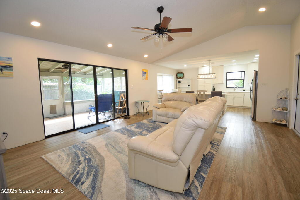 Discover this well cared for 3 bedroom, 2 bath concrete block home in Titusville with an amazing new kitchen, updated baths, and a spacious screened patio overlooking your fenced backyard. Inside, you'll find vinyl plank floors throughout and a bright, open layout. The kitchen features Australian quartz counters, stainless steel appliances, shaker style cabinets that are soft-close, and plenty of storage. Both bathrooms have modern updates. The fully fenced backyard offers room to relax, garden, or play, and the large screened patio is ideal for outdoor living. Convenient Titusville location with easy access to shopping, dining, and the Kennedy Space Center.