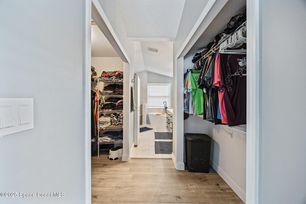 Breakfast Bar , Breakfast Nook , Built-in Features , Ceiling Fan(s) , His and Hers Closets , Kitchen Island , Open Floorplan , Pantry , Primary Bathroom -Tub with Separate Shower , Primary Downstairs , Smart Thermostat , Split Bedrooms , Vaulted Ceiling(s) , Walk-In Closet(s)