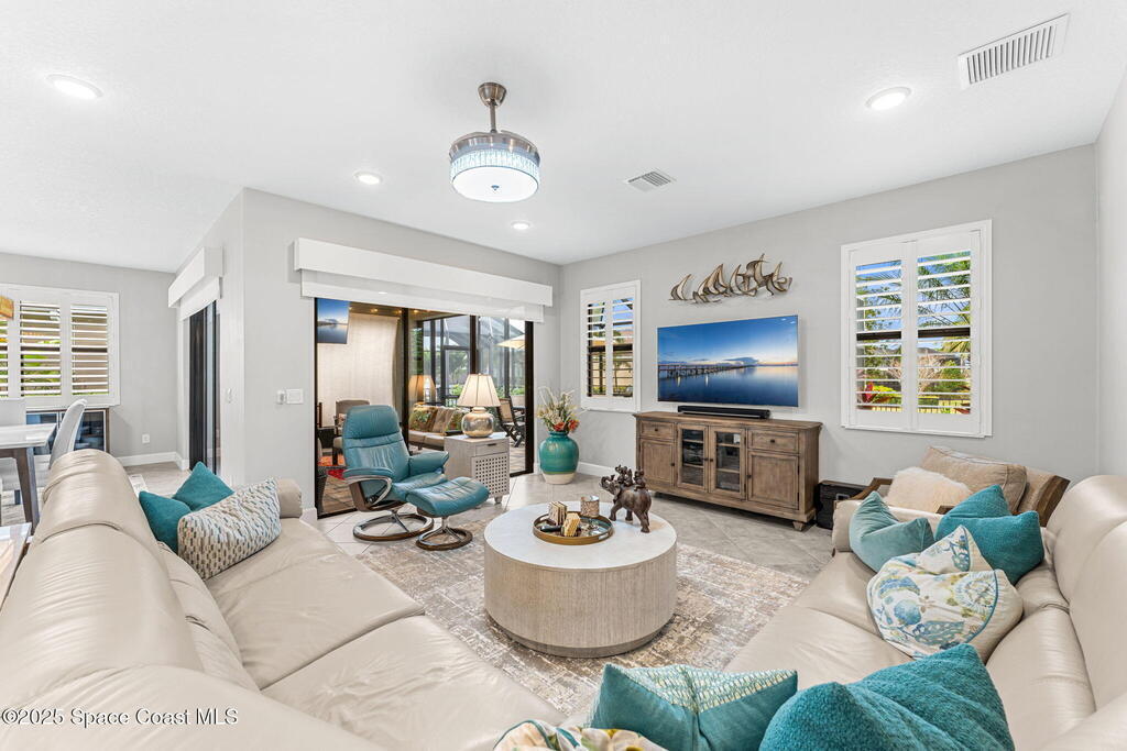 Nestled in the heart of Viera with Addison Village amenities, walking trails, and top-rated schools just moments away, this is more than a home--it's the effortless lifestyle you've been waiting for. From the inviting screened entry to the peaceful water views, every space feels intentional and welcoming. Inside the bright open layout centers around a thoughtfully updated kitchen--featuring new cabinetry, stunning countertops, a designer hood, and a spacious island perfect for everyday gathering. A flexible bonus room offers the freedom to create a home office, study, playroom, or fourth bedroom, while the serene primary suite includes custom closets and a calming connection to the outdoors. Step outside to an extended screened patio, upgraded landscaping, premium turf, and a fenced yard--an ideal retreat for quiet mornings or entertaining friends. This home is elevated by countless enhancements: make sure to see the Feature Sheet included for a list of all this home has to offer!