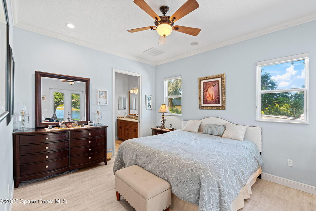 Stunning 5-Bedroom Waterfront Retreat on Almost 2 Acres at the End of a Quiet Cul-de-Sac, NO HOA...A Multigenerational Dream HomeTucked away at the end of a peaceful cul-de-sac and set on nearly 2 acres of beautifully maintained land, this exceptional waterfront home offers unmatched privacy, freedom, and luxury. Designed for comfort and versatility, this home features 5 bedrooms and 3.5 baths, including two spacious primary suites ideal for multigenerational living, guests, or teens. Each suite includes its own ensuite bath and custom built-in walk-in closets, offering privacy and convenience for everyone.Inside, high ceilings enhance the airy, elegant atmosphere, while large windows bathe the home in natural light and showcase stunning water views. The gourmet kitchen is a chef's dream, stainless steel appliances, custom cabinetry including soft close solid wood cabinets, and a huge walk-in pantry for maximum organization. Built-in closets are abundant