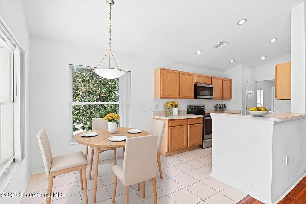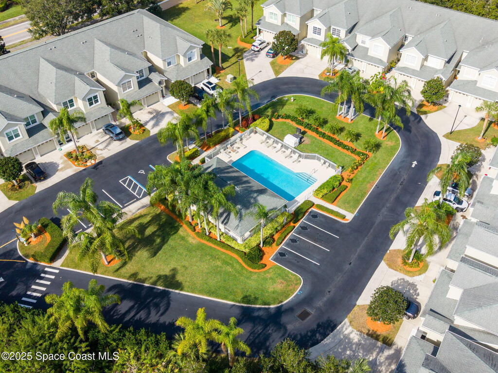 Enjoy worry-free living with peaceful lake views in this desirable gated community. This end-unit layout provides abundant natural light from additional windows, complementing the open floor plan, two spacious bedrooms, and a versatile den or office. Conveniently located less than 10 minutes from Viera's premier shopping and dining, including the new Trader Joe's and Whole Foods. Major updates include a 2019 HVAC, 2018 water heater, and accordion shutters for storm protection. The community offers a sparkling pool, roof replacement, lawn care, and full exterior maintenance, making low-maintenance Florida living effortless.
