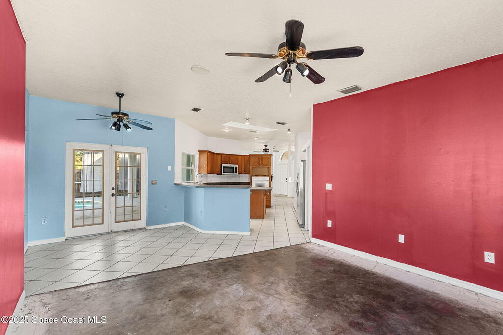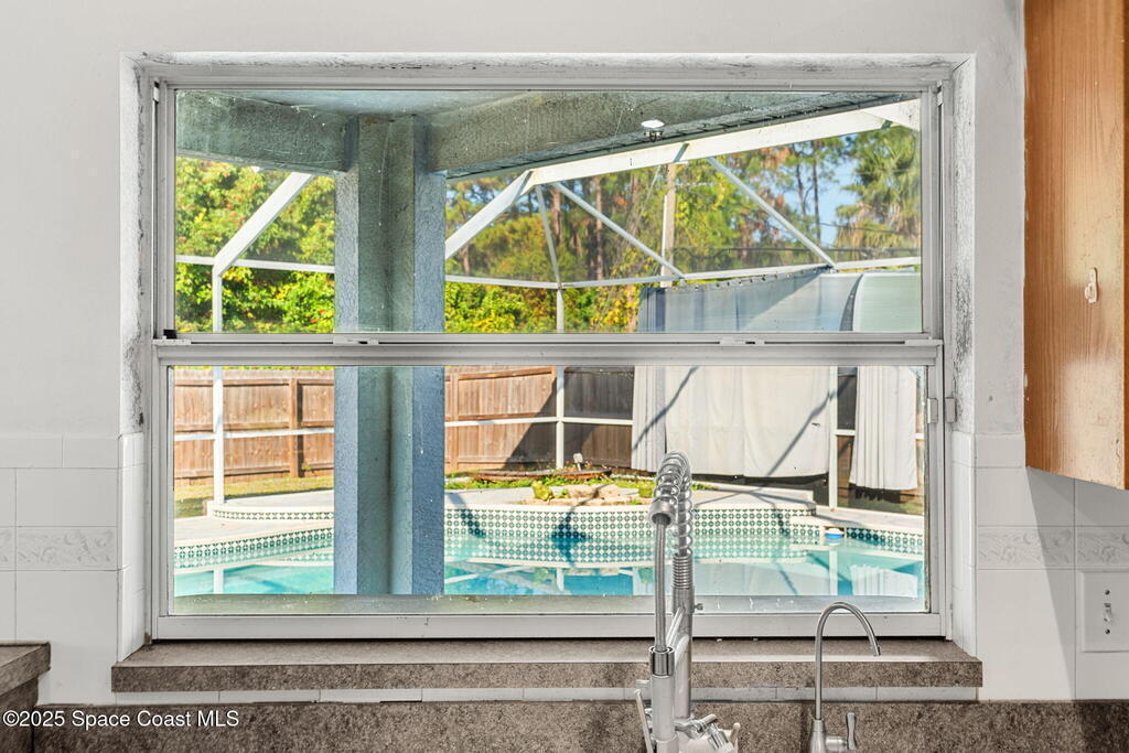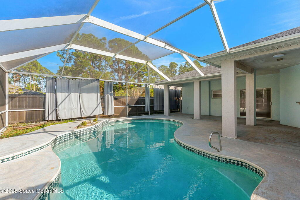 Endless potential meets unbeatable space in this custom-built CBS constructed 3-Bed, 2-Bath POOL HOME with a coveted 3-Car Garage, all set on a HUGE CORNER LOT-.74 Acres = 3 Lots! Step inside to find a split floor plan with a welcoming kitchen at the heart of the home, featuring a central island and breakfast bar--perfect for gathering. High ceilings and skylights add a bright and airy feel. In the primary suite, you'll find a relaxing garden tub and an updated walk-in shower. Outside, enjoy a screened pool and spacious trussed lanai and fenced yard--your own private oasis for year-round Florida living. Need room for toys? There's plenty of parking for a boat, RV, trailer, or all three! Major improvements include a newer roof (2021), water heater (2022), and HVAC (2017). Located just minutes to the new Heritage Square Shopping Center and easy access to I-95. Sold AS-IS, this home offers a fantastic opportunity to add your own touches and unlock its full potential!