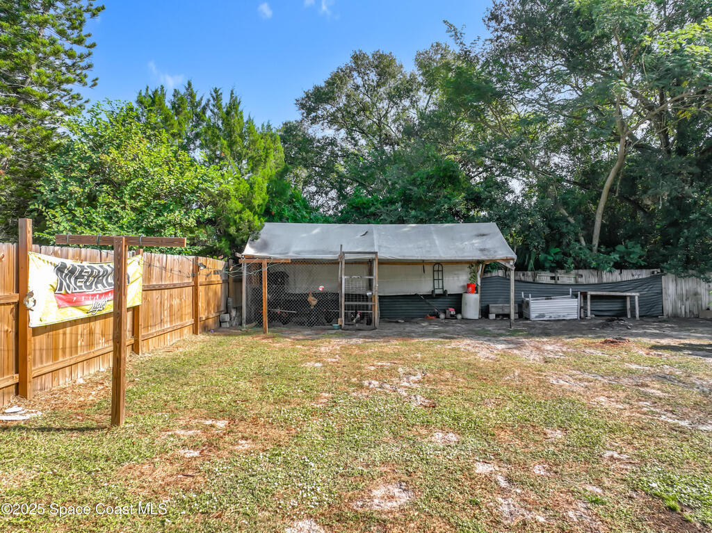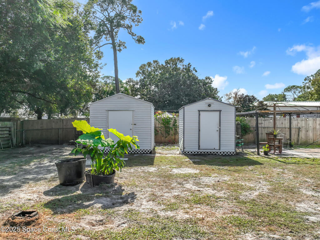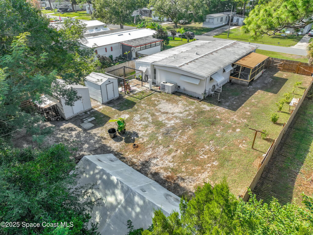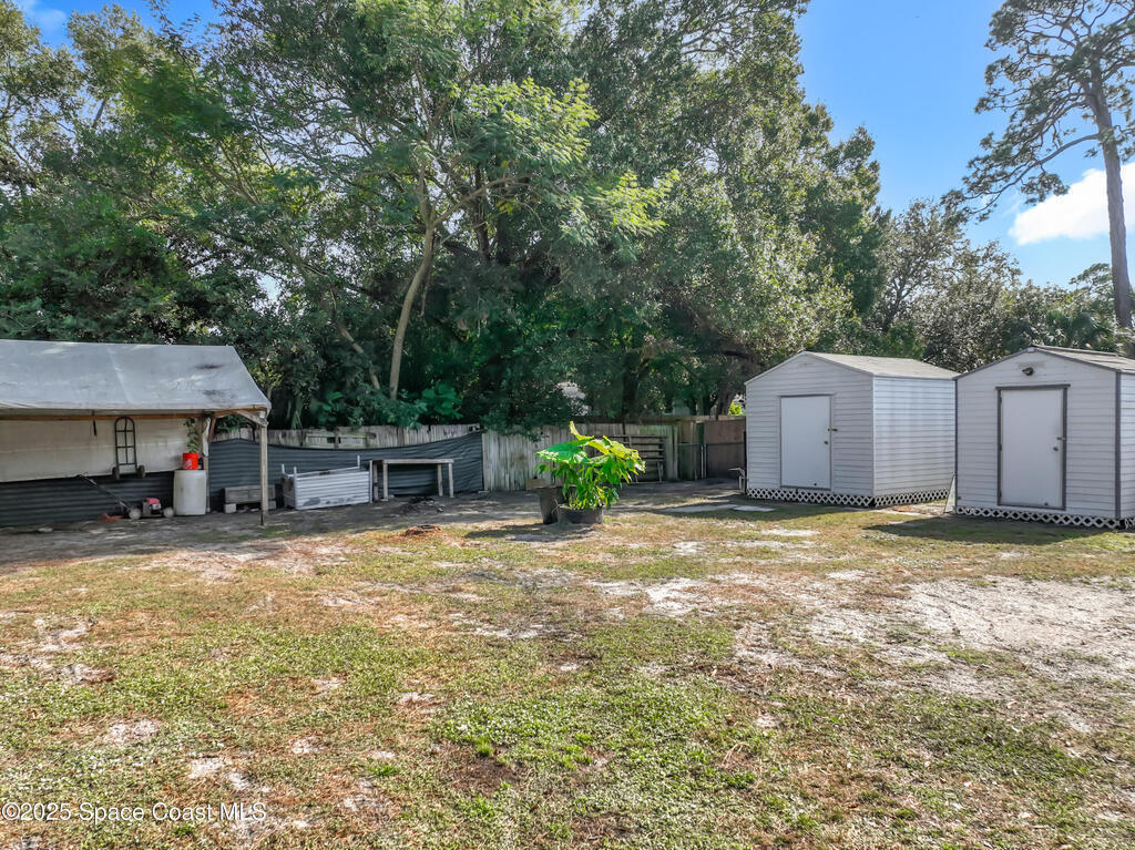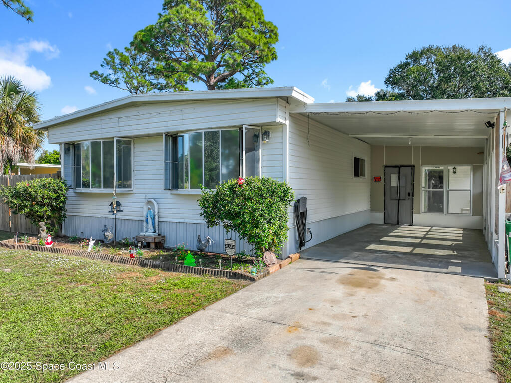 Opportunity awaits with this inviting 2 bedroom, 2 bathroom home sitting on a spacious 0.26 acre lot with no HOA and you own the land! This property offers incredible flexibility, comfort, and convenience in a highly desirable location close to restaurants, shopping, and quick access to I-95. Inside, you'll find an open floor plan with tile flooring throughout, creating a bright and cohesive living space. The spacious kitchen provides plenty of counter and cabinet space and flows seamlessly into the large dining and living areas--perfect for everyday comfort and entertaining. Enjoy multiple outdoor living options with an enclosed patio including AC, an additional screened patio and a generous fenced backyard ideal for pets, gardening, or simply relaxing. A durable metal roof adds peace of mind and longevity. The home also includes a carport, storage room with washer and dryer hookups, and two storage sheds for all your tools and recreational gear. You have additional gate access on the