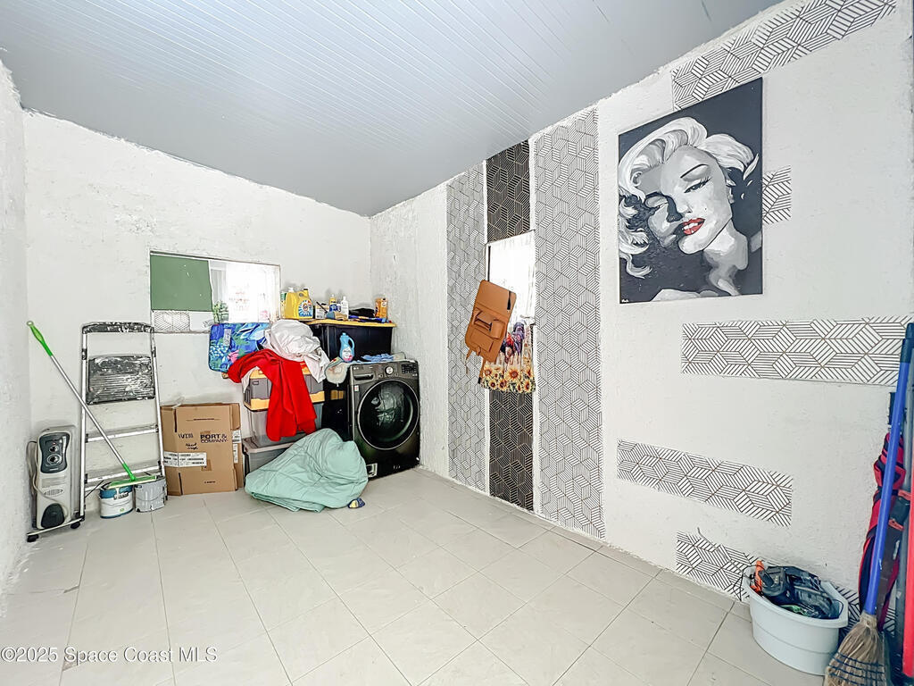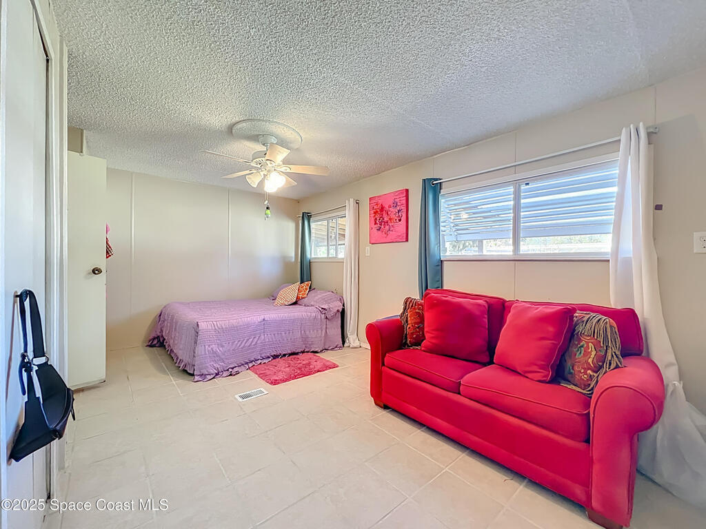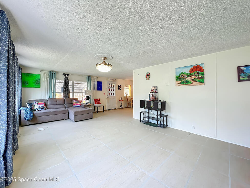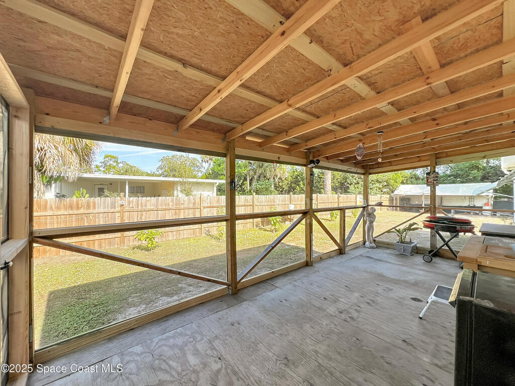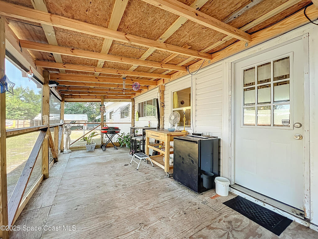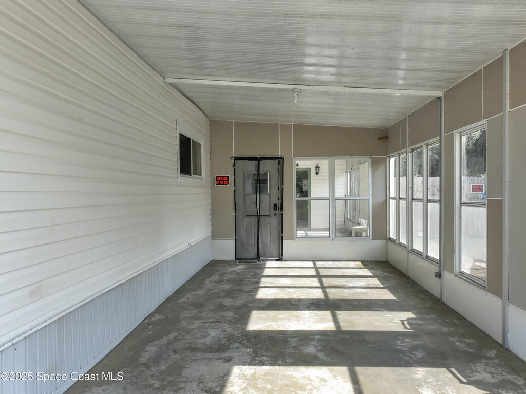 Opportunity awaits with this inviting 2 bedroom, 2 bathroom home sitting on a spacious 0.26 acre lot with no HOA and you own the land! This property offers incredible flexibility, comfort, and convenience in a highly desirable location close to restaurants, shopping, and quick access to I-95. Inside, you'll find an open floor plan with tile flooring throughout, creating a bright and cohesive living space. The spacious kitchen provides plenty of counter and cabinet space and flows seamlessly into the large dining and living areas--perfect for everyday comfort and entertaining. Enjoy multiple outdoor living options with an enclosed patio including AC, an additional screened patio and a generous fenced backyard ideal for pets, gardening, or simply relaxing. A durable metal roof adds peace of mind and longevity. The home also includes a carport, storage room with washer and dryer hookups, and two storage sheds for all your tools and recreational gear. You have additional gate access on the