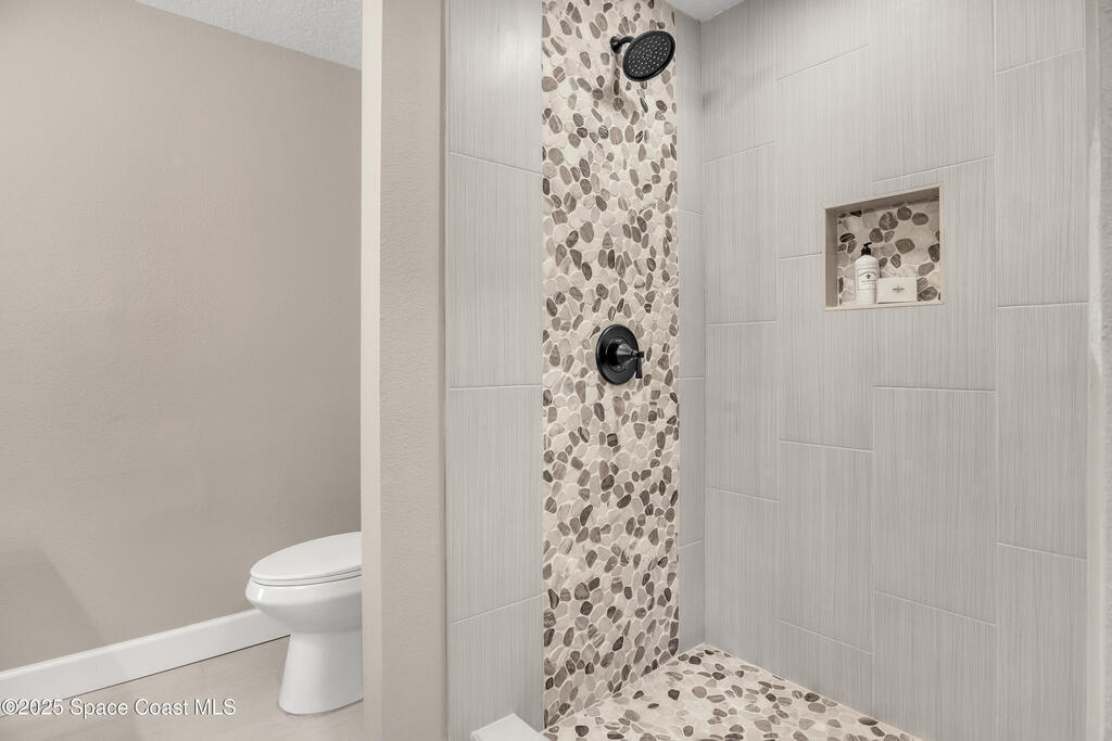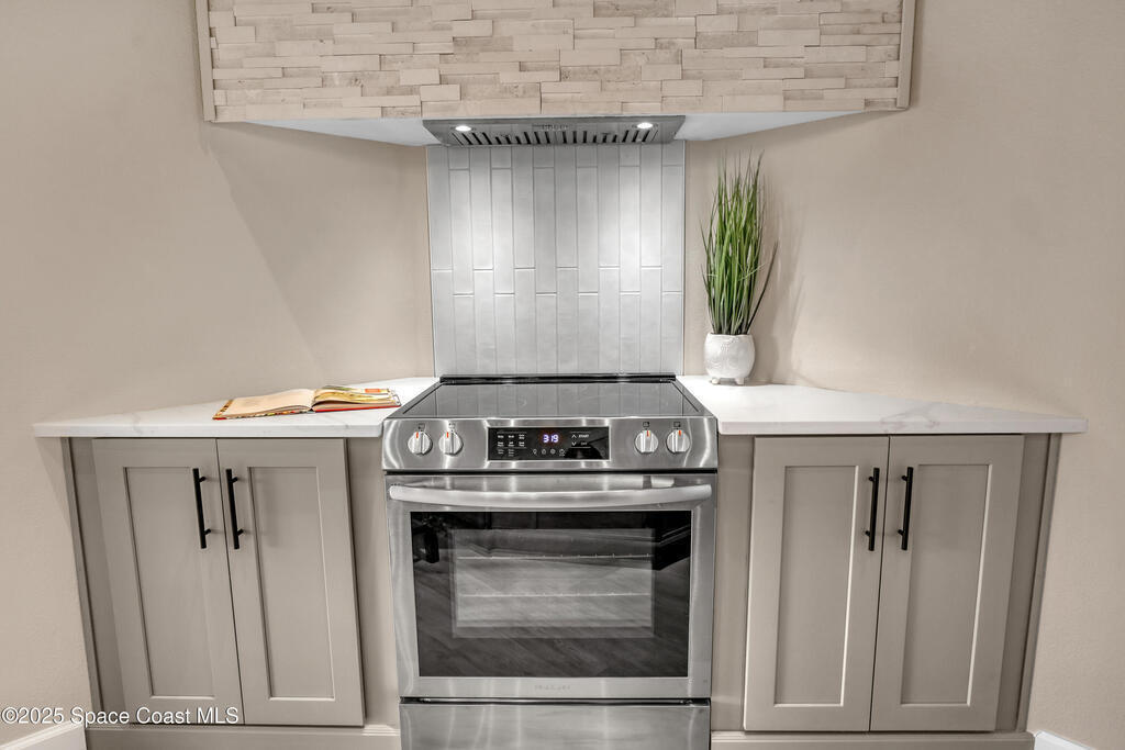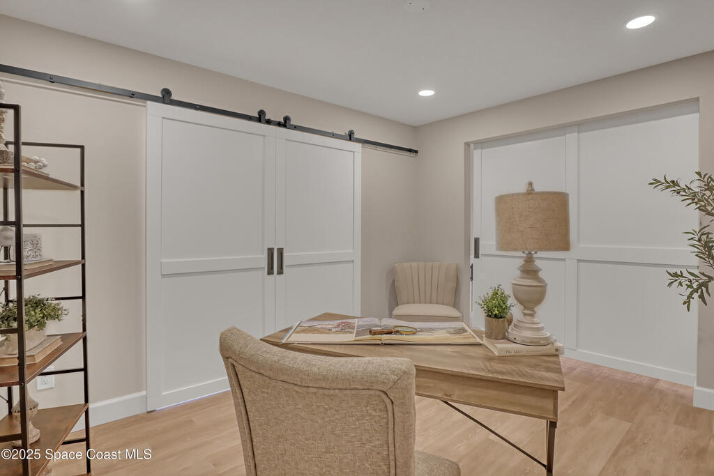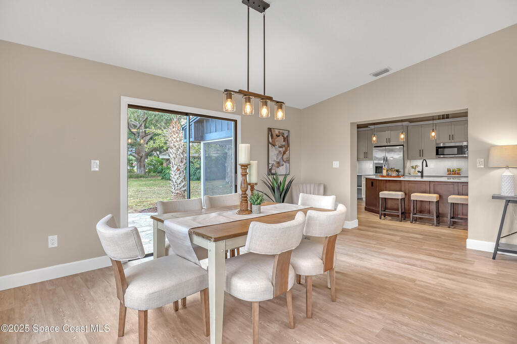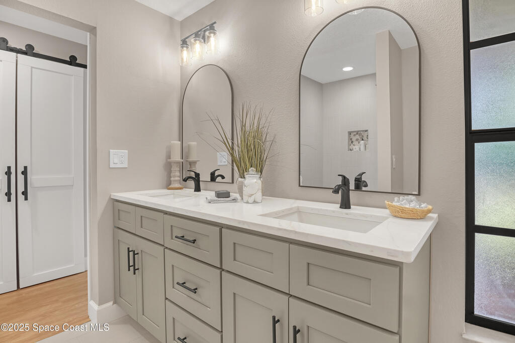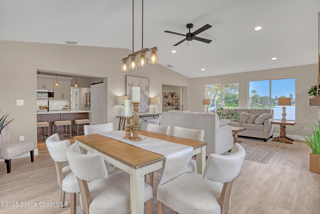 Tired of cookie-cutter Viera/Suntree homes?...well this is your house! Filled with unique features. Everything is new, so it's like getting a brand new house in the heart of Suntree. Large cul-de-sac lot with wrap-around waterfront. Features a dedicated office or flex room. New luxury vinyl flooring & lighting throughout. Brand new kitchen with soaring 14' tall ceiling with exposed wood beams and T&G planks. Large quartz island with overhang, 42'' soft-close shaker cabinets, under-cabinet lighting, SS appliances, range hood, coffee corner, & tons of storage. Great room with 180 degree water views & new stone fireplace. Each guest room has their own slider door access to the private atrium that features a new concrete patio, sunshade, & overhead lighting. Both bathrooms are all brand new with pebble tile showers, tile floors, & quartz countertop vanities. Indoor laundry room. All new int/ext doors. Roof (2025), HWH (2025), AC (2019), & select AC ducting (2025). A-rated school district