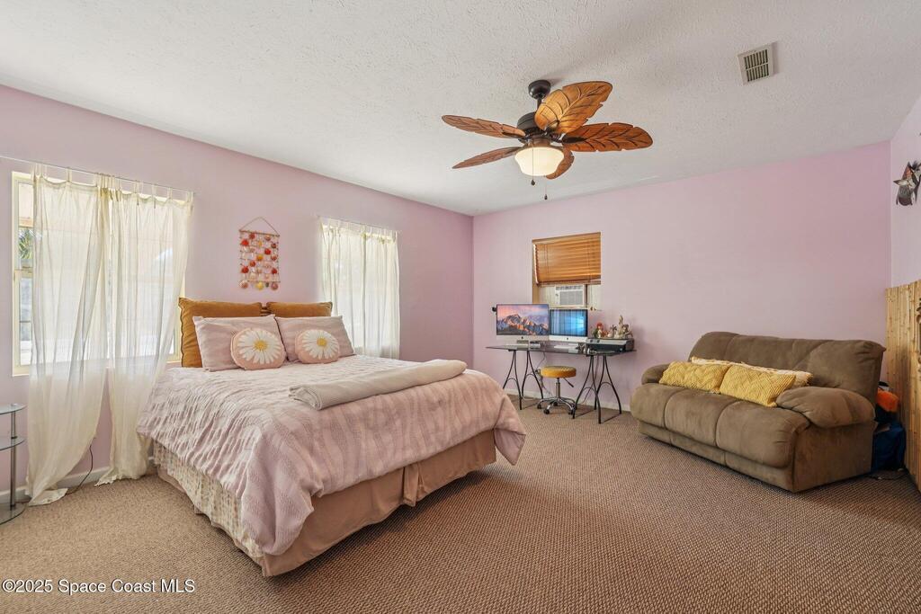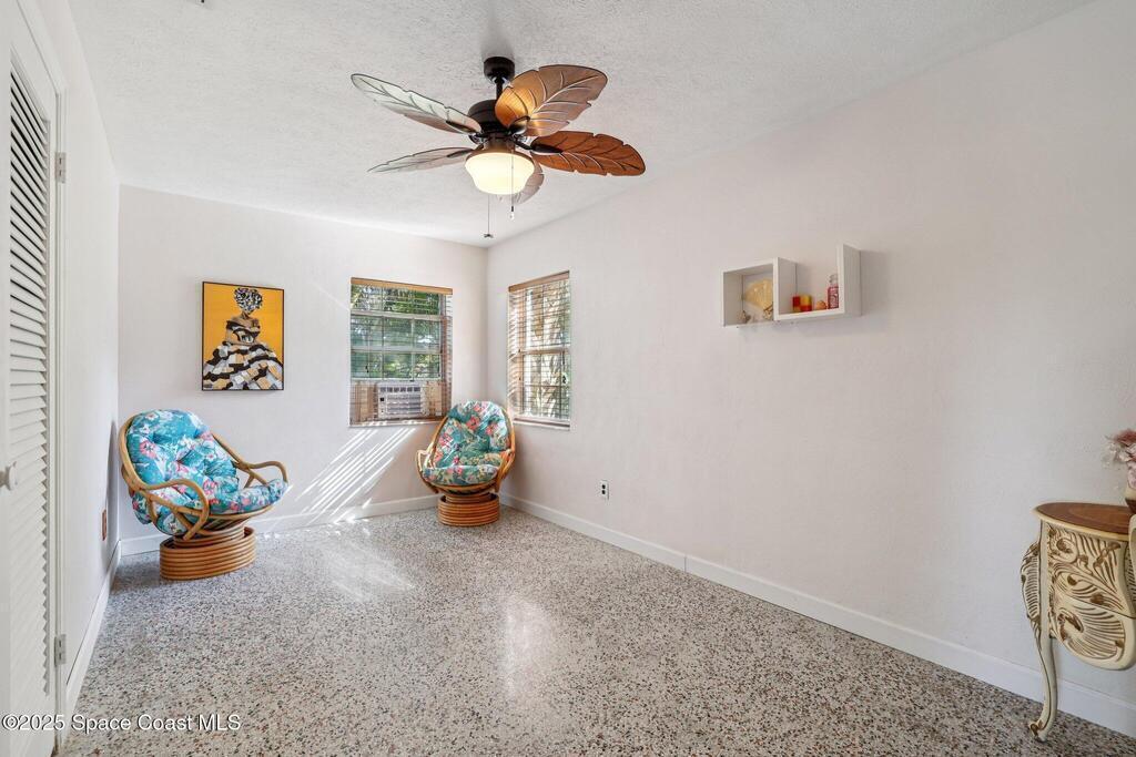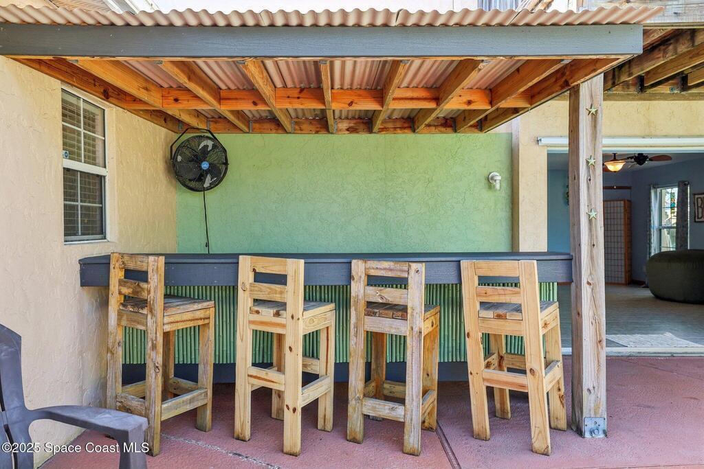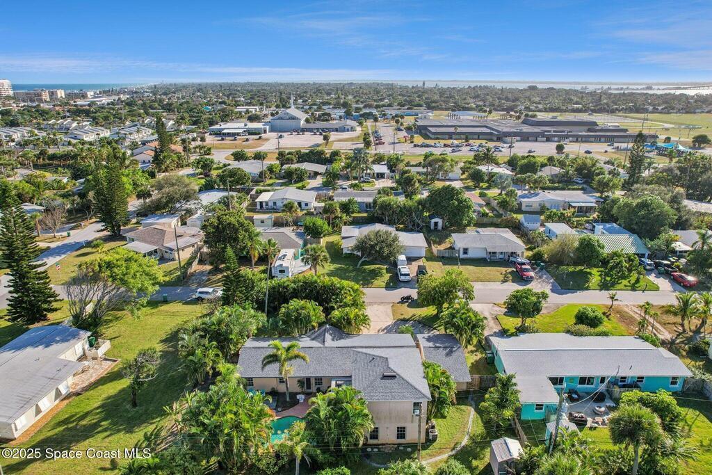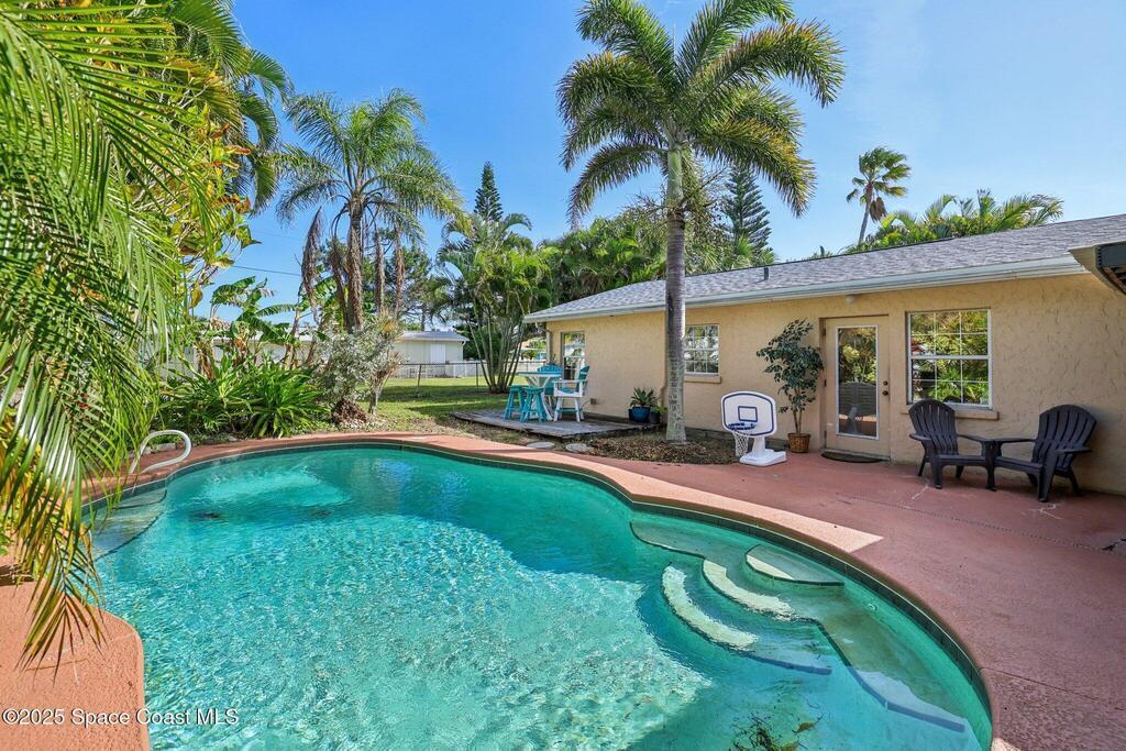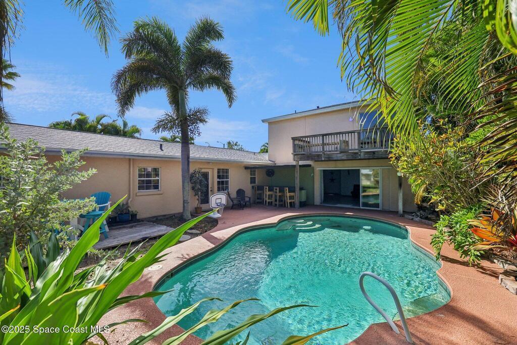 Just one block from the sparkling shores of Indialantic, this spacious 4-bedroom, 3-bath pool home offers the ideal setting to enjoy Florida coastal living. With 2,724 sq. ft. of interior space, an inviting in-ground pool, and multiple indoor/outdoor entertainment areas, this property is perfect for those seeking a full-time residence or a fantastic vacation retreat. The main level features terrazzo flooring in bedrooms and baths, luxury vinyl plank in the primary living spaces, and a bright kitchen complete with granite countertops, wood cabinetry, and a glass tile backsplash. Triple pocket sliders open wide to the pool deck, and outdoor bar seating, inviting seamless indoor-outdoor enjoyment. The upstairs primary suite offers a private balcony overlooking the pool, dual vanities, and a full bath, while an additional separate living area with tile flooring and private access presents excellent versatility for guests, hobbies, or potential rental opportunities.