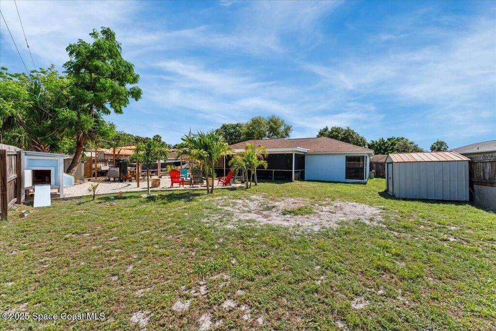 AMAZING AIRBNB OPPORTUNITY -- TROPICAL ESCAPE!Beautifully updated concrete-block home on an oversized lot with room for a pool. Backyard paradise features a custom pergola, rockscape, fire pit, grilling area, hammock, exotic flora, and a heated private outdoor shower. Secure BOAT/RV parking behind the fence. Inside, enjoy an open-concept split layout with cathedral ceilings, abundant natural light, new hurricane windows/sliders, new tile flooring, and modern flush-mount lighting. Stylish tile walk-in showers, newer roof, newer A/C, new water heater, smart oven/range, new fridge, and new garage door opener. AT&T fiber for ultra-fast streaming/work from home. Giant screened-in porch plus water softener. Located between US-1 & I-95 in a highly sought-after area with two neighborhood nature preserves offering walking/biking trails--plus friendly neighborhood peacocks!