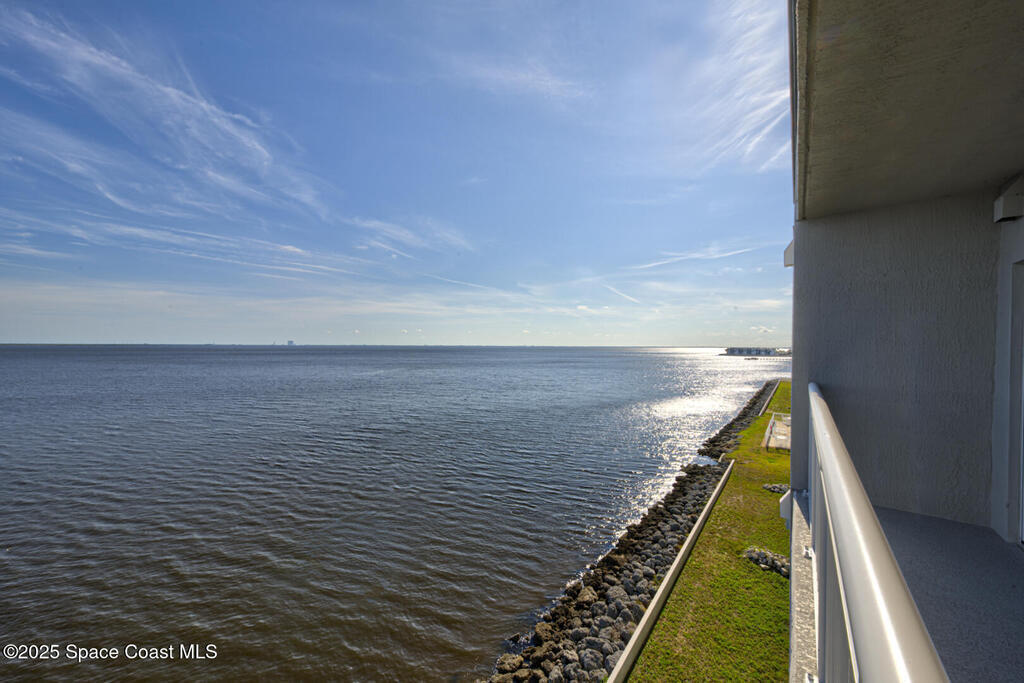 Exquisite River View! Direct Waterfront, 2 Bedroom, 2 Bathroom, River Front Condo with 1201 living sqft on 5th Floor built in 2023 located in Titusville right off the banks of the Indian River. This property is almost directly across the river from Nasa's Launch Pad giving a spectacular view of Launches all from the comfort of it's living room or balcony. This condo has much to offer with its open floor plan, tons of natural lighting, spacious kitchen with bright white wooden cabinetry, quartz countertops, black & stainless steel appliances and breakfast bar, tile flooring throughout. In unit, laundry closet, washer and dryer included. Under the building is one assigned parking space, there are additional open parking spaces in front of the building. Association Amenities offer a Community Pool, Fitness Center, Club House, the association fees include Cable TV, Internet, Water, Trash, Sewer and pest control. This property is worth taking a look at!
