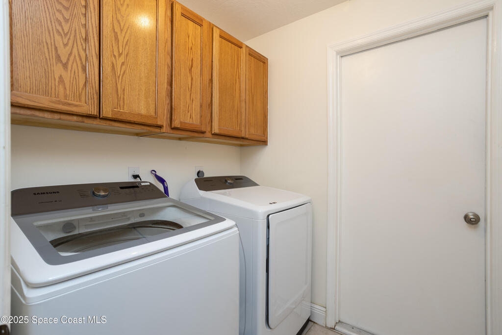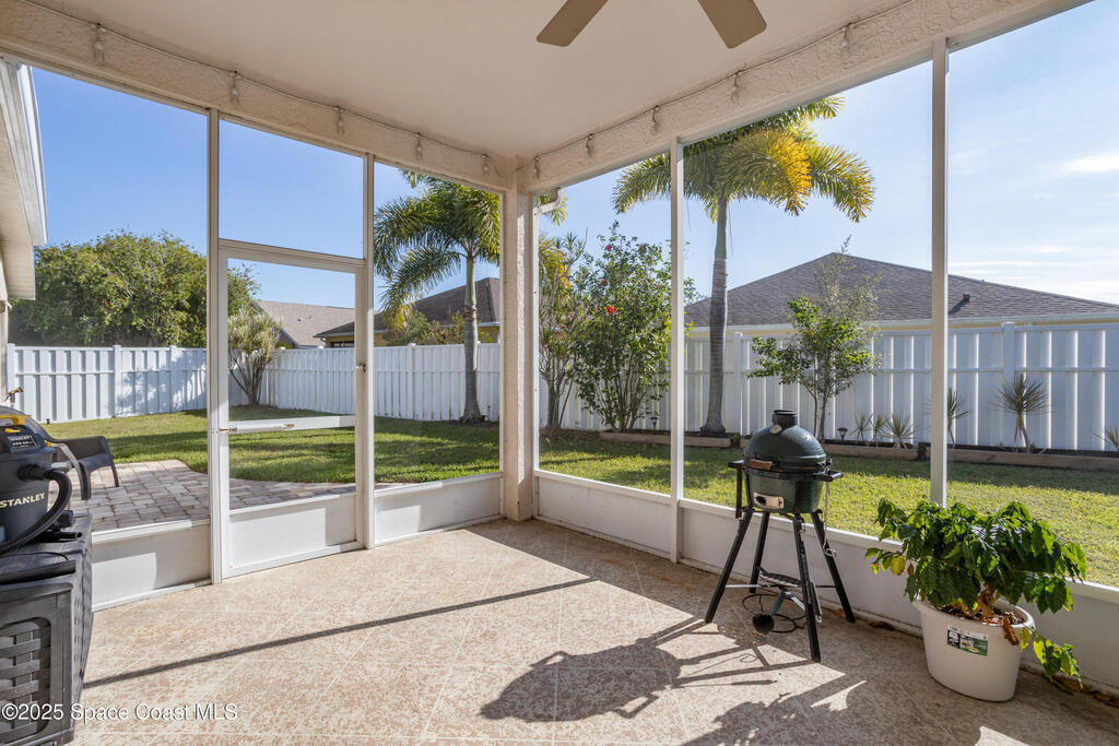 Beautiful 3-Bedroom, 2-Bath home in Viera East with all the updates! Light and bright with high ceilings throughout. Wood-plank flooring in living areas. Gorgeous eat-in kitchen with granite counters, stainless-steel appliances, HUGE island with breakfast bar, and lots of storage. Primary bedroom with large walk-in closet and private bathroom with granite counters, double sinks, garden tub, and separate shower. New roof 2017. Water heater 2018. AC 2015 (perfect condition- serviced 3x annually). Laundry room with washer and dryer. Ring doorbell, upgraded blinds, and remote-controlled sun shades. 2-car garage. Tasteful landscaping. Fully-fenced back yard. Relaxing screened back porch and brick paver patio. Hurricane shutters throughout. Located on a quiet cul-de-sac in the Osprey Ridge subdivision, with relaxing community pool. Close to A-rated schools, recreation, shopping, and dining. 15 minutes to the beach, 45 minutes to Orlando. Completely move-in ready and waiting for you now!