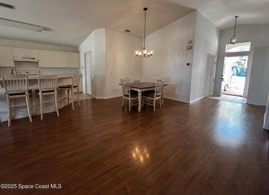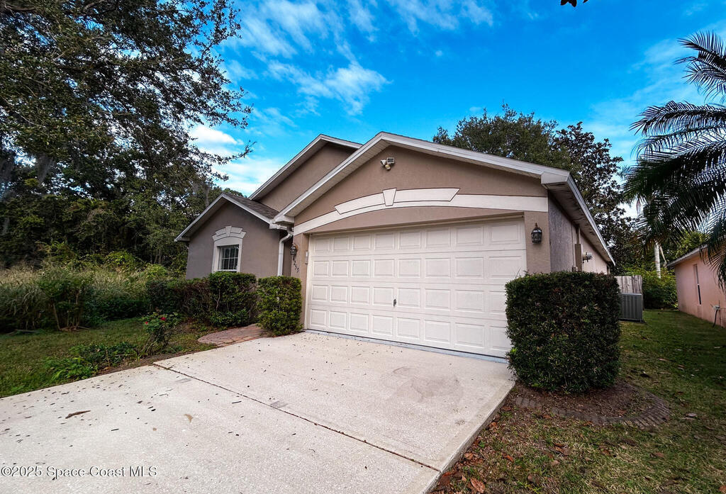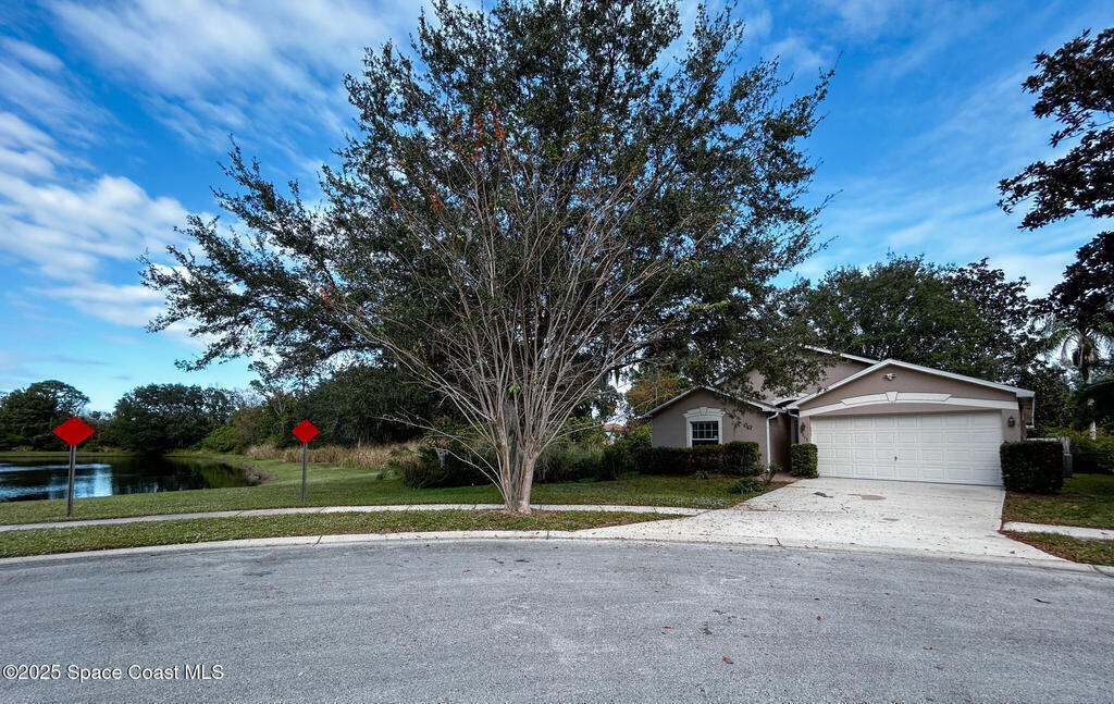 This CBS 3-bed, 2-bath home with a 2-car garage sits at the end of a quiet cul-de-sac and offers a rare blend of privacy, space, and natural surroundings, bordered by an HOA-maintained pond and a lush conservation area. Inside, vaulted ceilings and open living spaces create an airy feel, with a kitchen that flows easily into the dining and living areas--an ideal layout ready for your personal updates. The split floor plan features a generous primary suite with dual sinks, a soaking tub, and a separate shower, while the additional beds offer versatility for guests, family, or office space. The backyard includes mature shade trees and plenty of room to enjoy the peaceful setting. Convenient to I-95, beaches, shopping, dining, and Kennedy Space Center, this CBS home needs some TLC but holds incredible potential in a highly desirable location.