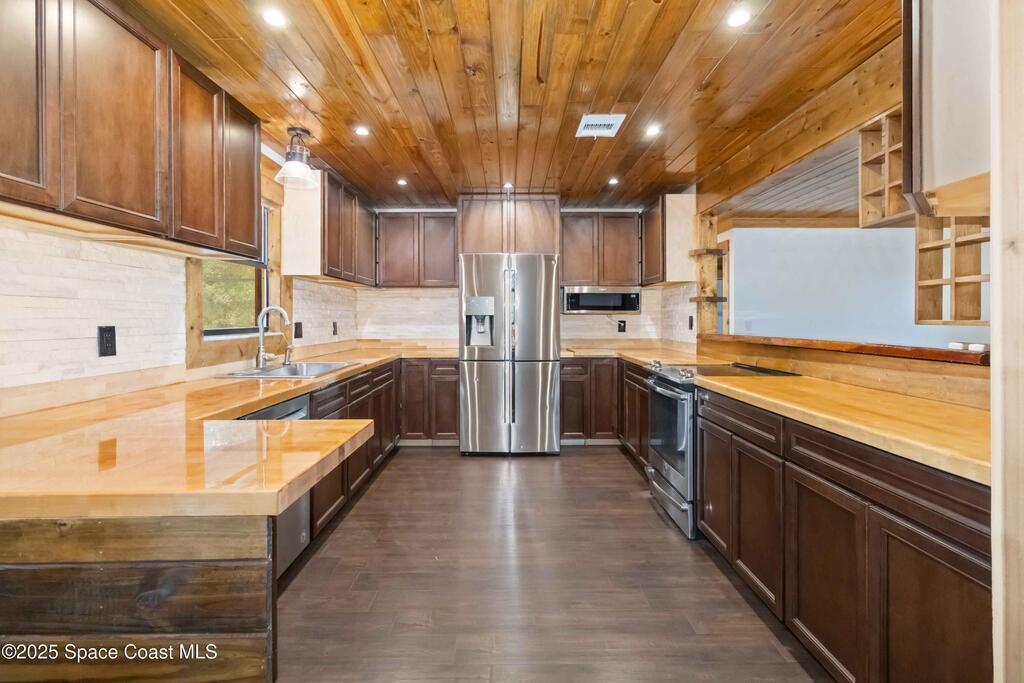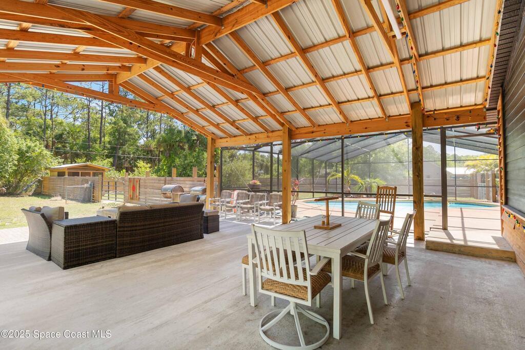 This updated 3-bed, 2-bath single family POOL home is the secluded country paradise you've been looking for! No HOA. You will fall in love with the details like exposed wooden beams, a natural stone fireplace, and custom cedar siding. Relax by the pool enjoying the privacy this 1 acre property offers with a huge covered patio perfect for large outdoor gatherings. The kitchen boasts butcher block counters, pecan wood cabinetry and stainless steel appliances. The massive custom carport is ideal for storing multiple vehicles and recreational toys. There is also a 2 car garage under air that could be used for more storage or converted into a fourth bedroom! The roof (2020), with its black metal finish, adds to the rustic appeal. Have animals? There's plenty of room for your very own mini farm and/or garden. Don't miss out on this one of a kind property - schedule a showing today and claim your piece of country bliss.
