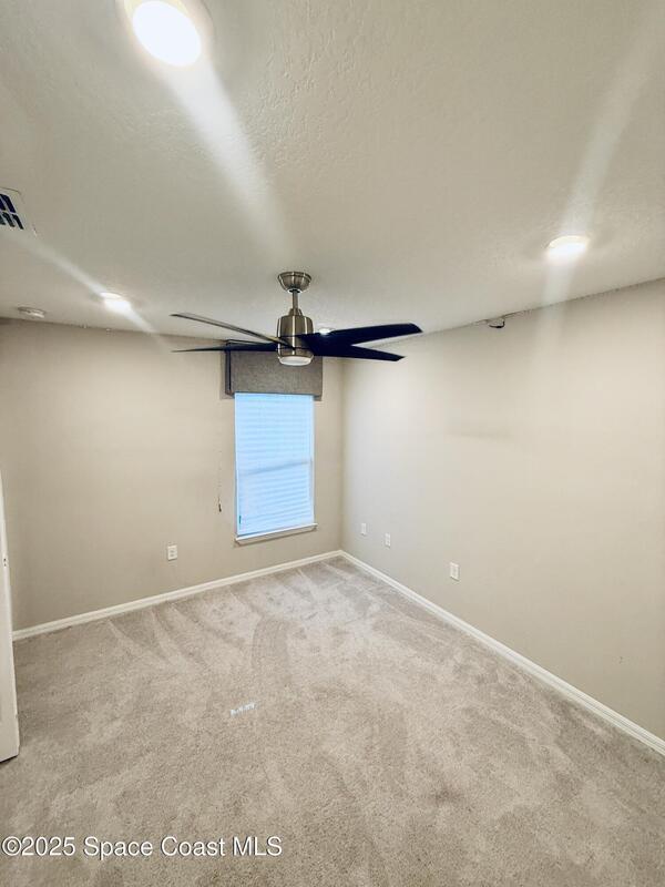 Welcome to this beautifully maintained 4-bedroom, 2-bathroom home with a two-car garage, located in a quiet and established Northeast Palm Bay neighborhood. This spacious rental combines comfort, modern upgrades, and everyday convenience.Step inside to an open and airy floor plan featuring vinyl plank flooring throughout the main living areas and soft carpeting in all bedrooms. Ceiling fans are installed throughout the home, adding comfort and energy efficiency. The living spaces flow seamlessly into a well-appointed kitchen with ample cabinetry and counter space. The split-bedroom layout offers added privacy, with a generous primary suite featuring an updated bathroom and large closet. The second bathroom has also been tastefully modernized.This home includes smart home technology, providing added convenience and peace of mind with features such as smart thermostats, keyless entry, and app-controlled systems. Enjoy outdoor living on the screened-in porch, perfect for relaxing