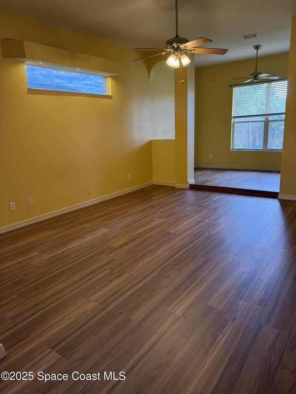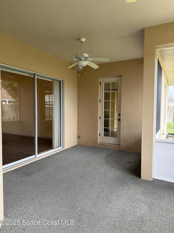 Available NOW! Beautiful and CLEAN home in a desirable Windsor Estates (gated) community. Spacious floor plan with family room and living room with sliders opening to screened lanai. Lanai opens to a fully fenced yard. Large master bedroom with sitting room or an office and access to lanai. His and hers bathroom vanity and a nice garden tub. Open kitchen with 42'' cabinets and formal living and dining room. Brand new Refrigerator. Family room with tall sliding doors offers beautiful view of the large, fenced backyard. Laundry room with sink and 3-car garage make this the perfect rental. This is an amazing home in a great location, close to the beach, shopping and A+ schools, Lawn care is included. Great location, close to shopping, restaurants, very close to Patrick Air Force Base and our amazing Beaches!
