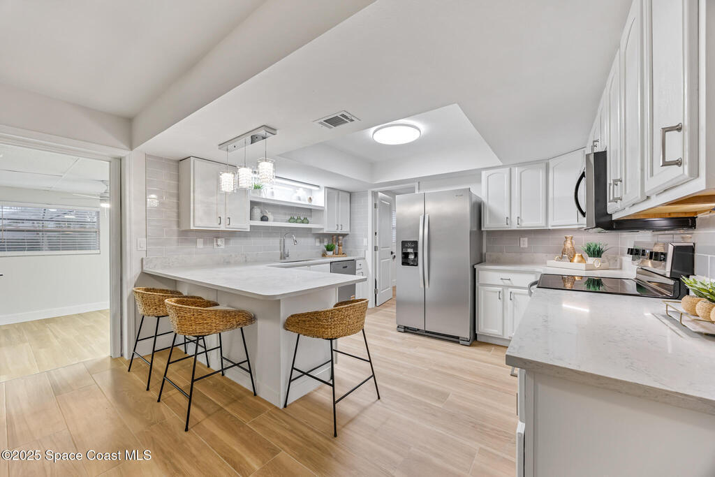 one block from the beach, beautifully renovated 4-bedroom, 2-bath home offers modern coastal living at its best. Features include brand-new impact windows and sliding glass doors, fresh interior and exterior paint, a stunning kitchen with new stainless steel appliances and sleek quartz countertops. Both bathrooms have been fully updated with new tile and vanities, and the home includes a convenient indoor laundry room. Additional upgrades include updated electrical and plumbing. Enjoy outdoor living on the private patio and take a dip in the large custom pool. owner is fl lic. real estate broker