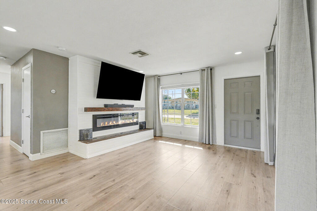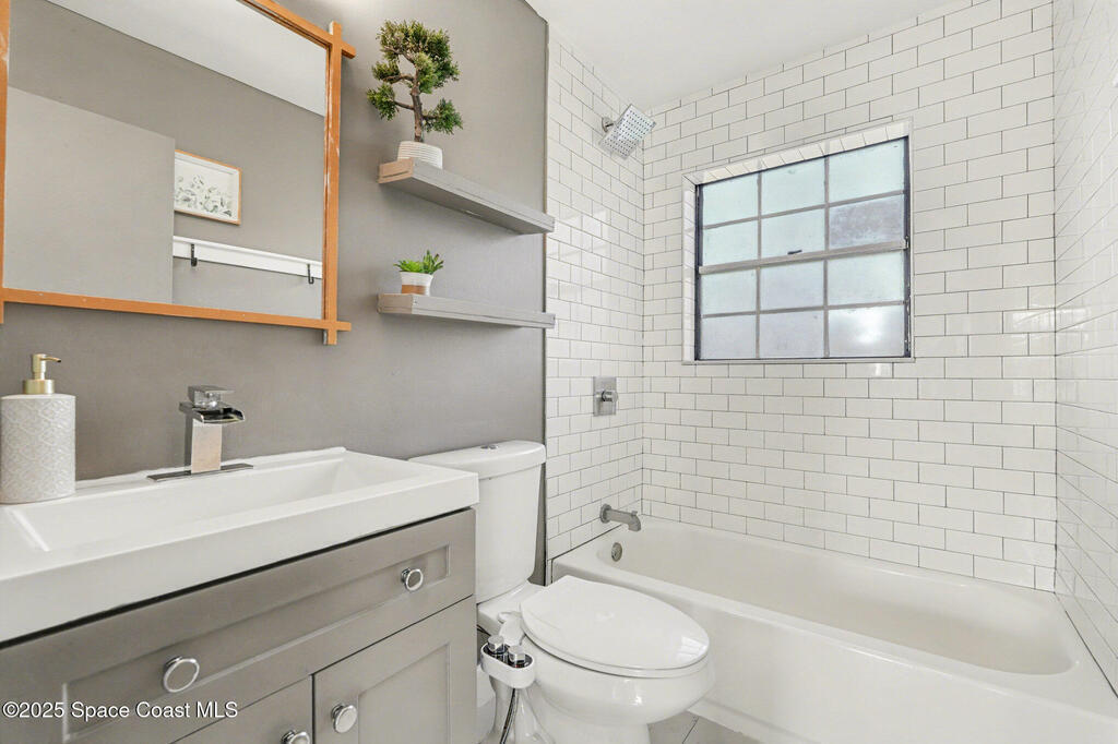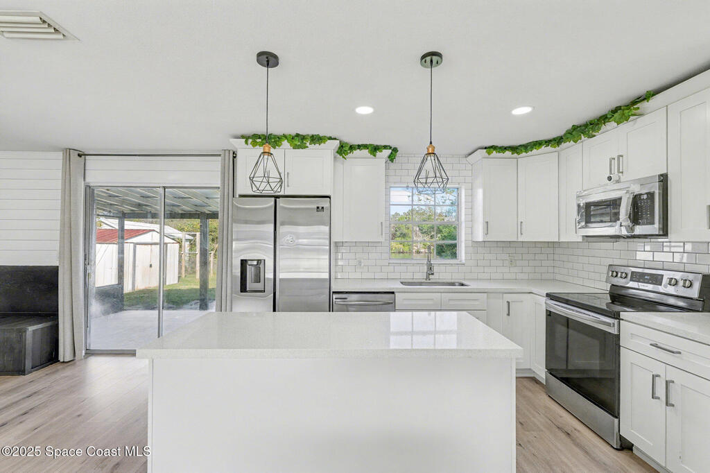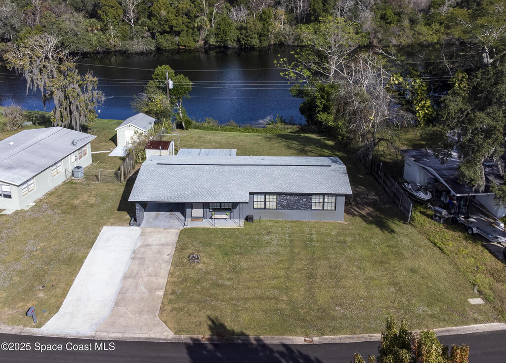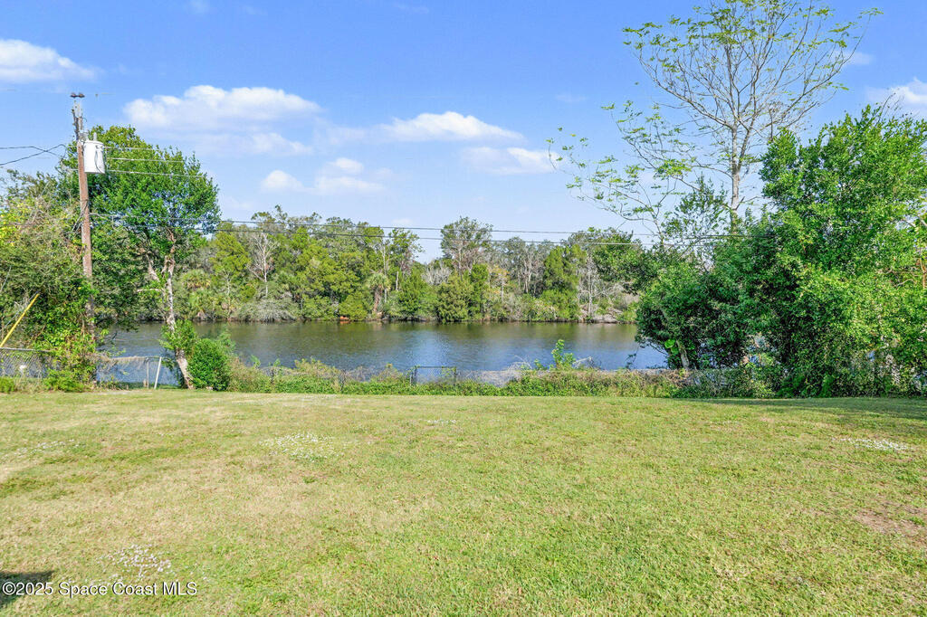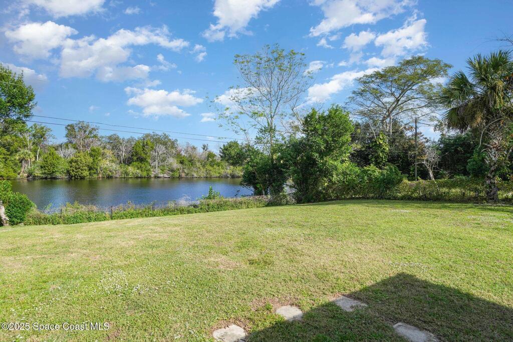 Move in ready with a beautiful waterfront view! This 3/1 home features an efficient layout including indoor laundry. Many recent renovations have been made to include a stunning kitchen with an island, featuring shaker cabinets with crown molding, subway tile backsplash, stainless appliances & quartz countertops. Updated bathroom, LVP flooring throughout, updated electrical, LED lighting and fans, drain lines have been replaced all the way to the road, and a brand new roof 11/25! Pond fed lawn irrigation with a new pump, large peaceful backyard with plenty of room for a shop or pool, and an extended driveway for additional parking. This home is located on a high and dry lot in the back of a quiet subdivision with minimal through traffic. Close proximity to dining and stores. Under a 30 minute drive to the beaches, the Space Center, and Viera!