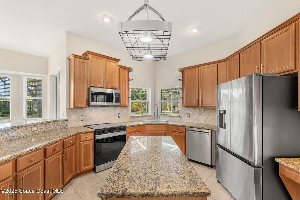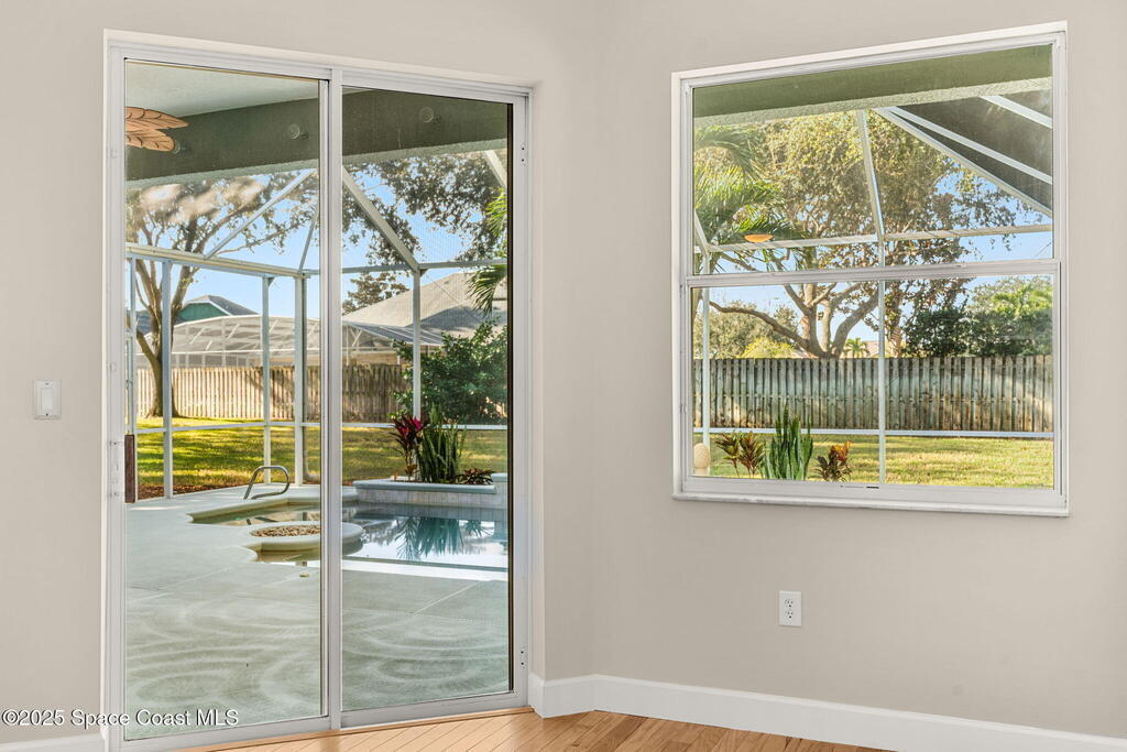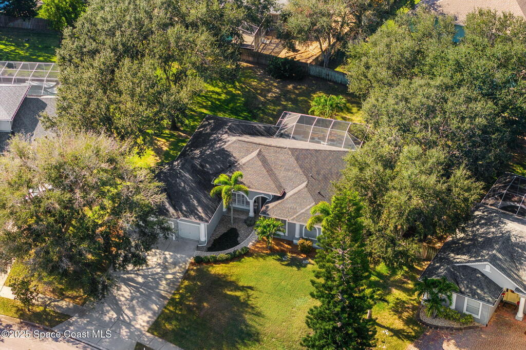 Welcome to River Grove, one of South Merritt Island's premier executive communities with a private community dock for fishing, kayaking, and sunset views on the Indian River. This inviting 4-bedroom, 2-bath home offers high ceilings, abundant natural light, and an open, comfortable layout. Formal living and dining rooms provide flexible space for everyday living or entertaining. The kitchen features an island, built-in desk, and breakfast nook, opening to the family room with wood flooring and pool views. The primary suite is spacious and private with a large custom walk-in closet and well-appointed bath. Enjoy peaceful pool views from the screened porch--perfect for relaxing. Updates include a 2018 roof, new A/C system in 2018 with new ductwork in 2021, fresh interior and exterior paint, and new Kohler toilets throughout. A well-cared-for home in a highly desirable South Merritt Island location.