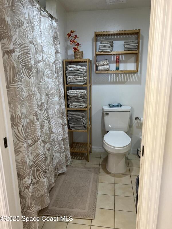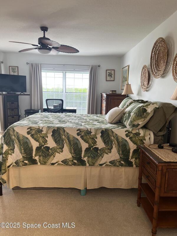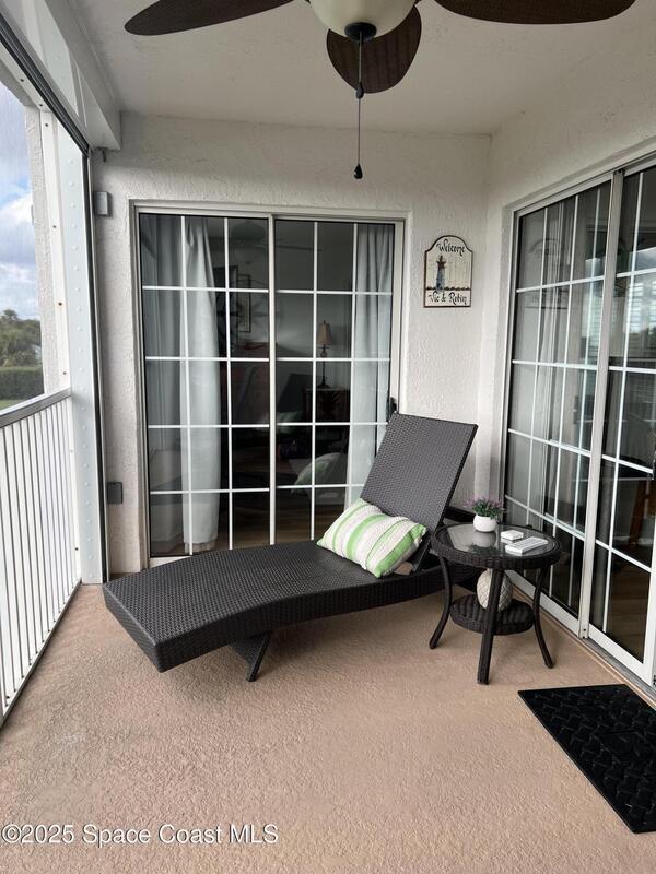 Come and Enjoy! Unfurnished Condo located in this well-maintained Condo complex. Paradise awaits you. You'll have a front row seat for the daily sensational sunsets from this spacious screened balcony, located on the canal and the Banana River, two blocks from the beach. This spacious two-bedroom two-bath condo has an updated kitchen with granite counters, newer stainless-steel appliances, breakfast bar, and eating area. Primary Bedroom bath has a double vanity separate from the shower & jetted tub, LV flooring throughout. All windows have Hurricane shutters. Boat and RV storage available on-site. There is boat-ramp access at adjacent Ramp Road Park. Amenities include: three pools, two tennis/pickle ball courts, riverfront boardwalk, and exercise room.Private one car garage w/remotethe
