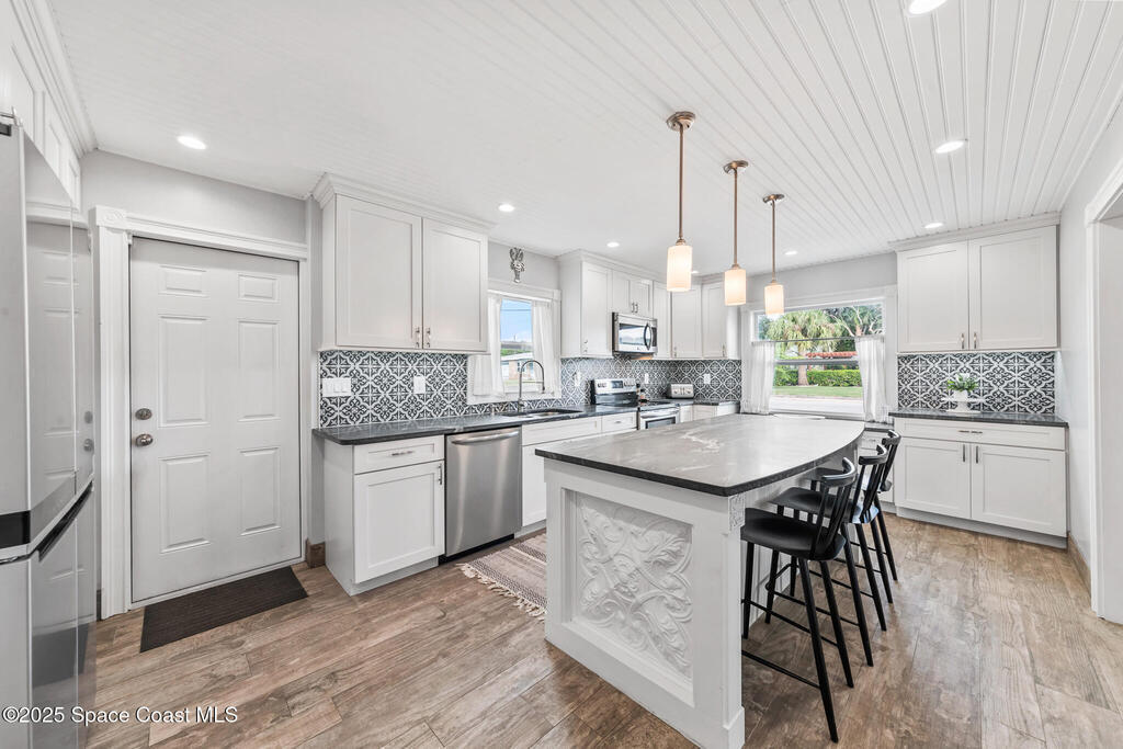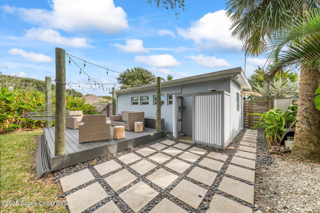 Location, charm and the true Cocoa Beach lifestyle... this one has it all! Just two blocks from the ocean and a short stroll to downtown Cocoa Beach, you're minutes from the best restaurants, shopping and entertainment the area has to offer. Positioned on a corner lot this beautifully remodeled 4-bedroom, 2-bath home delivers both style and convenience. Inside, you'll find a bright open-concept living space with vaulted ceilings, quartz countertops, a stunning updated kitchen with island and terrazzo floors in the bedrooms that add a touch of timeless coastal charm. The backyard feels like its own private retreat complete with a deck, privacy fence and an outdoor shower which is perfect after a day at the beach! Whether you're searching for a full-time residence, a vacation getaway or an Airbnb investment this home checks all the boxes! Impact rated windows,Roof 2023, AC 2018, Water Heater 2016. 15 min to Port Canaveral, 45+ min to Orlando