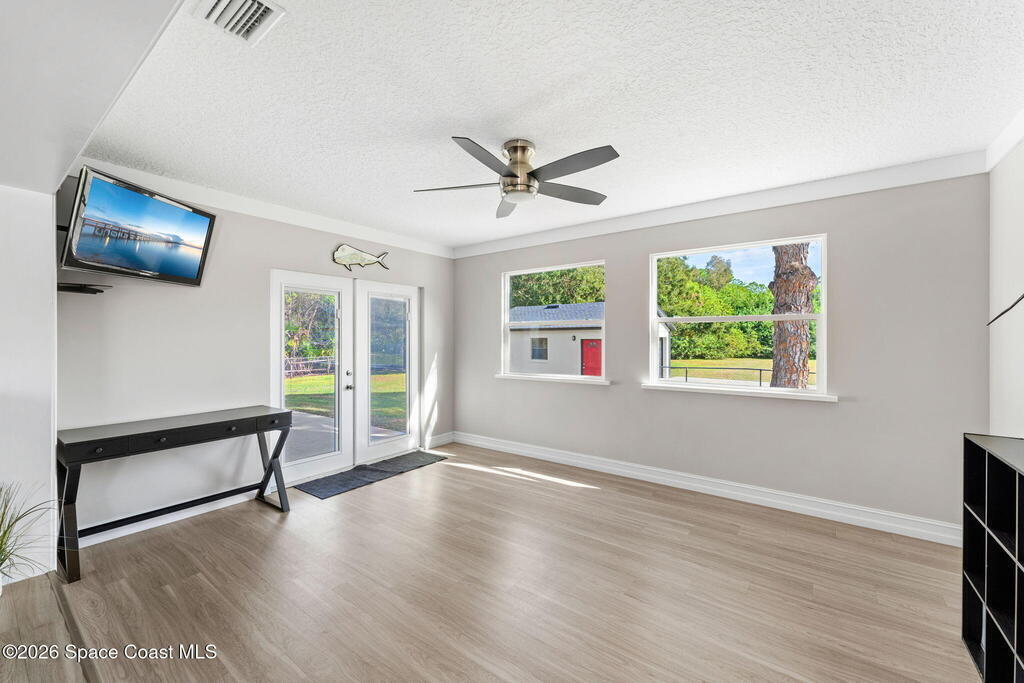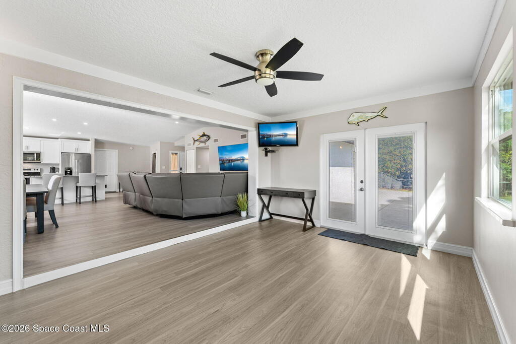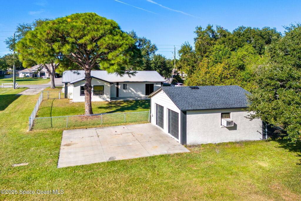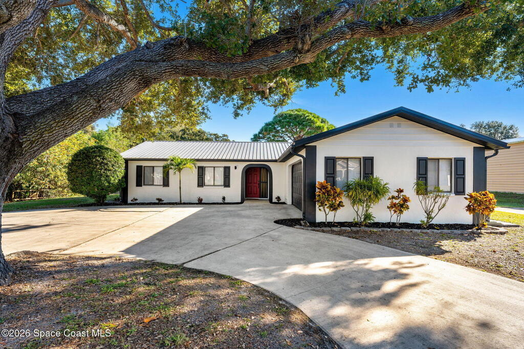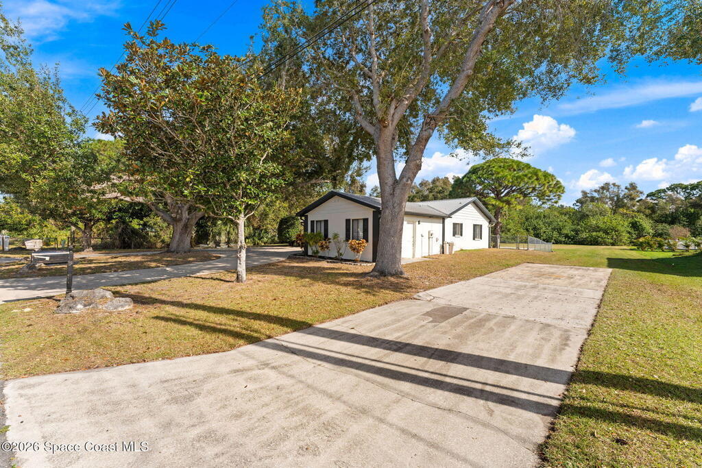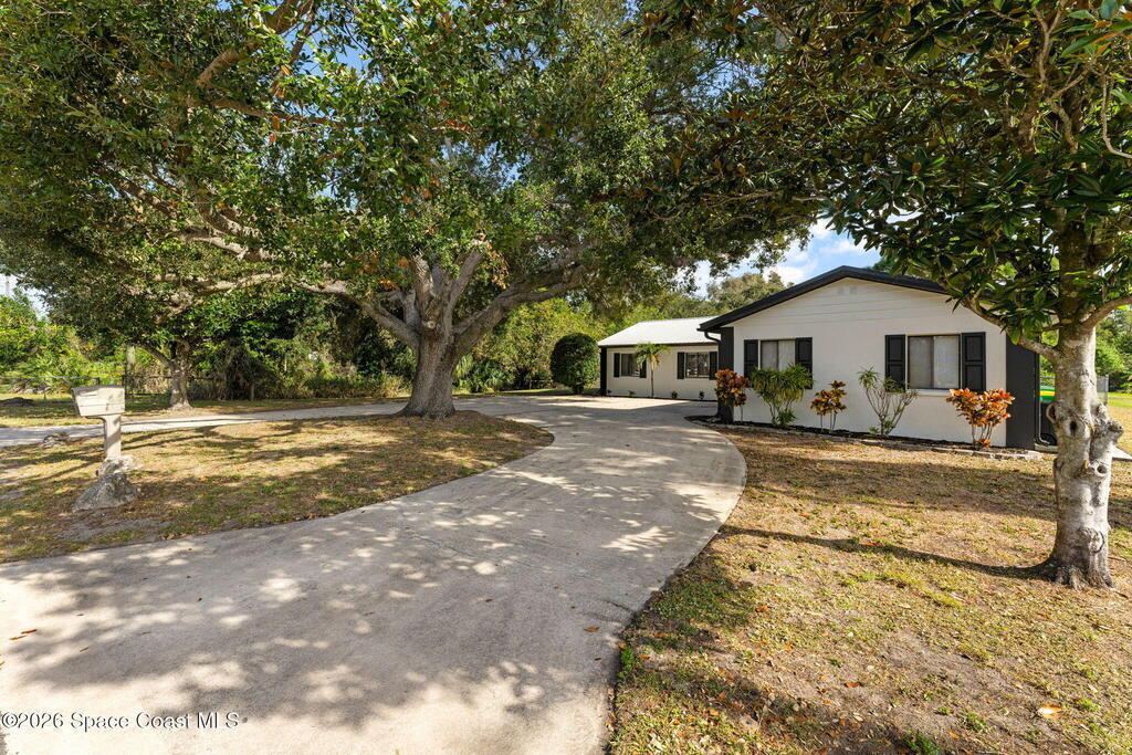 Extremely rare North Merritt Island 1 acre lot & additional detached 2 car garage! Updated, upgraded, turn key! Kitchen opened up and remodeled in 2021, complete with new appliances & extra electrical outlet above cabinets for future additional lighting. Fresh interior paint, luxury vinyl plank floors. Bonus room windows & French doors are impact. Backyard extends significantly beyond fence. Boat parking or RV pad on south side with 50 amp hook up. Septic on north side front yard allows for endless possibilities in backyard. Main home has 2 car garage and there is an additional 2 car detached garage. Exterior painted December 2025. AC 2020 & added ducts.