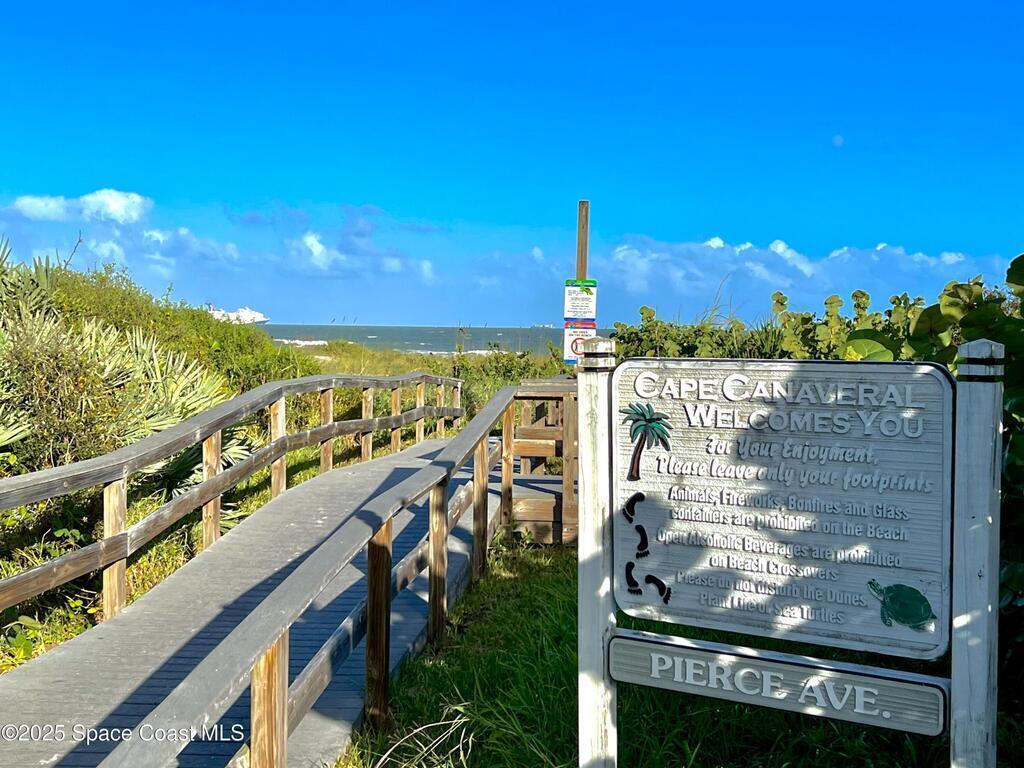 $2,000 BUYER CREDIT! Welcome to YOUR Pearl by The Sea! Just 500 steps from the beach & 1 mile to the famous Cocoa Beach Pier! This rare, updated unit stands out with a thoughtful 2018 renovation featuring new LVP flooring, updated kitchen cabinetry, stainless steel appliances, a newly added dishwasher with upgraded plumbing and electrical, an additional closet, an updated bathroom, and further electrical improvements. The large bedroom easily accommodates a king-size bed. Other improvements include a NEW A/C (2017), water heater (2017), & an 8-year-old roof. In 2025, all windows were professionally tinted for energy efficiency & comfort. First Floor Unit only steps from the laundry room & barbecue area. Move-in ready to rent with a 1-month minimal rental or reside at your small piece of paradise! Close to Beachline Express (528) to Orlando, all area attractions, all airports & Port Canaveral cruise ships.See the rocket launches from your private yard.
