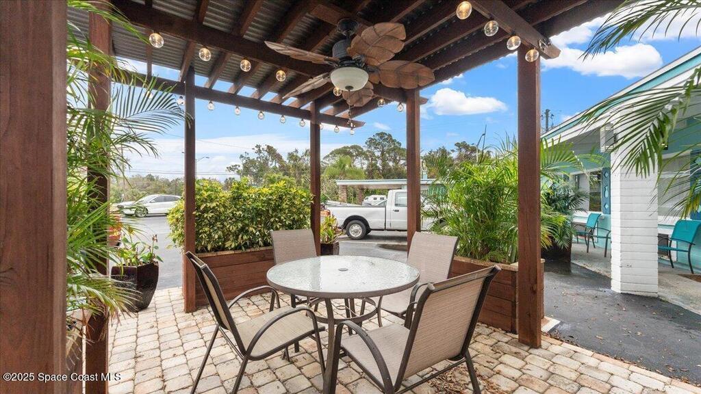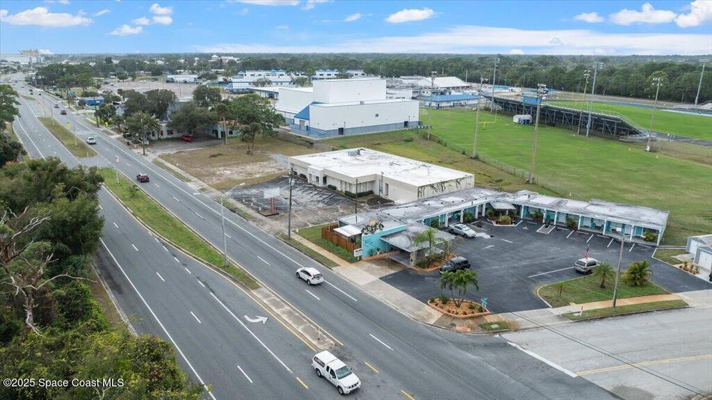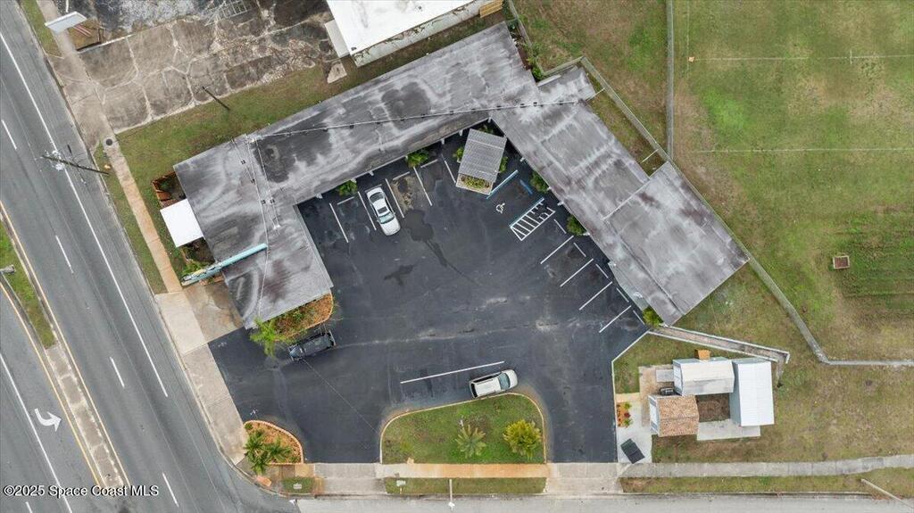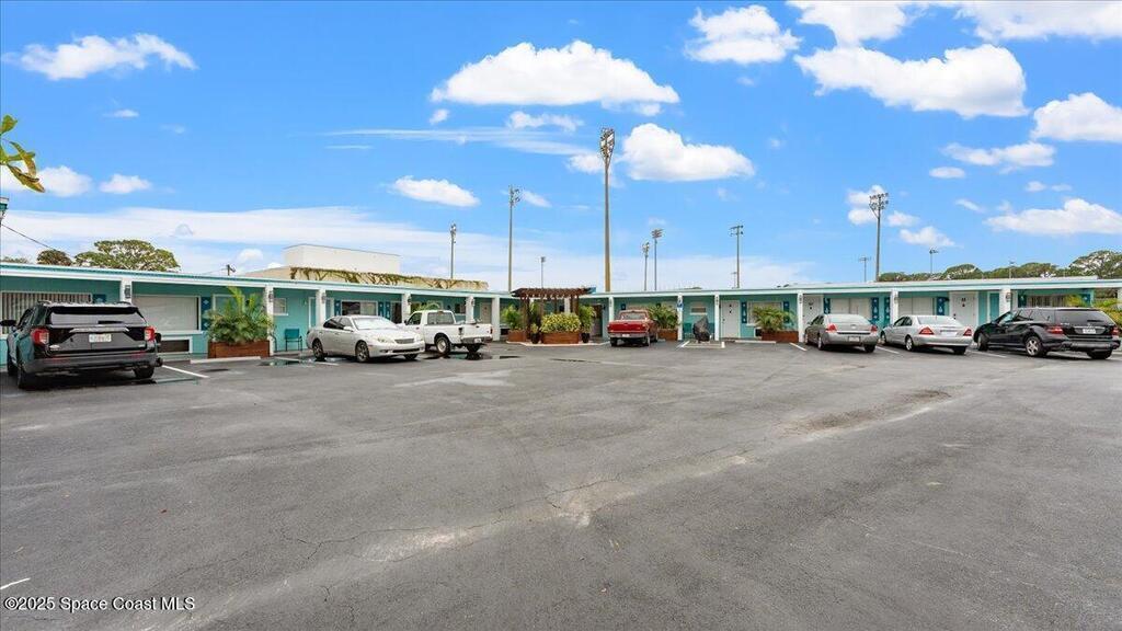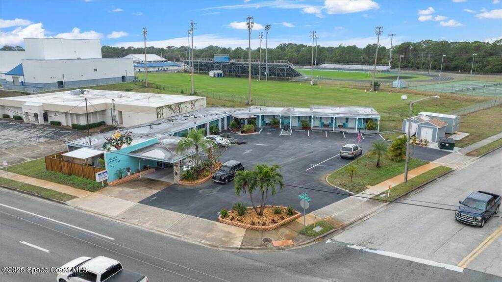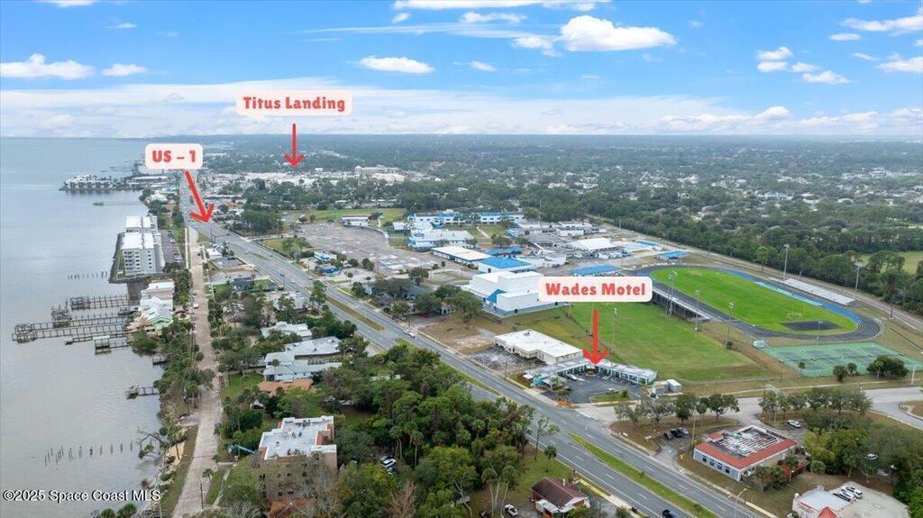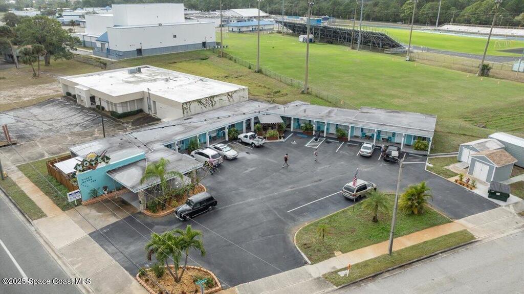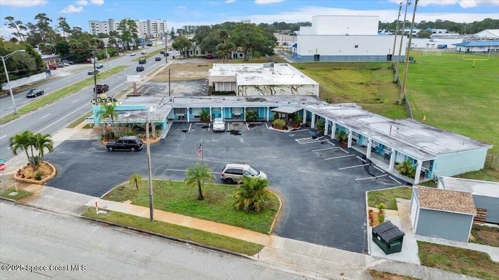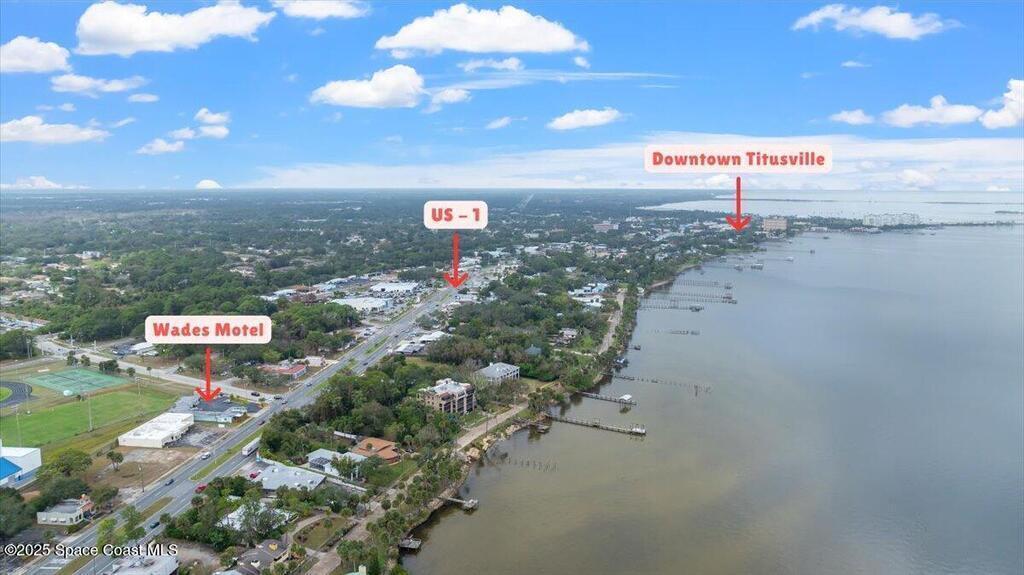 Rare opportunity to purchase Mid-Century Modern roadside motor inn in historic Titusville - Gateway between Nature & Space! Wade's Motor Inn offers 11 rooms of efficiency style plus manager's apartment with private courtyard. Each guest room features tile flooring, kitchenette, TV, Queen sized bed & private ensuite. Guest suites in 3 floorplans - 225sqft (7 units), 265sqft (3 units) & 257sqft (1 unit.) Manager's apartment is over 600sqft with private door into office. Courtyard is appx 10x32 - privacy fenced & includes covered patio with brick pavers. Porte cochere retains the vintage vibe for guests to park out of the elements while checking in. Gathering under the 12x14 pergola is made special with cafe lights & tropical landscaping. 2 additional storage buildings included. Full onsite laundry room with coin operated machines. Motor Inn is well placed for local guests & travelers. Close proximity to rocket launches & Playalinda Beach .. short drive to cruise ports & amusement parks.