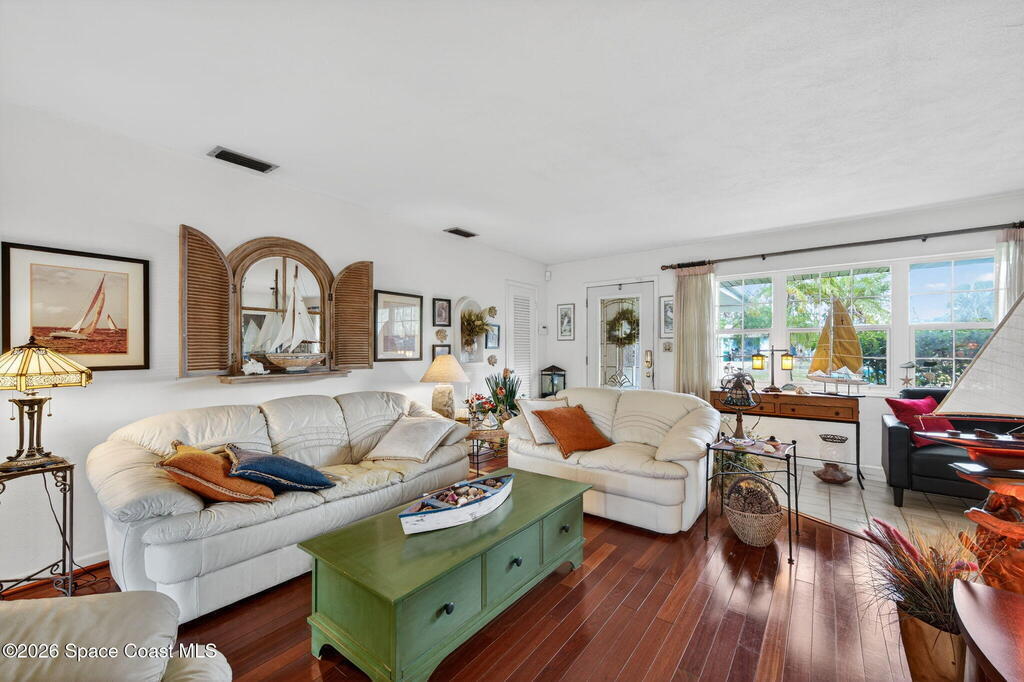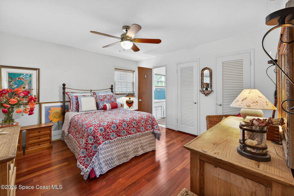 Adorable, charming, and full of character--this cottage-style home is the perfect first or second home! Step inside to beautiful Brazilian cherry wood floors flowing through the living room, primary bedroom, and guest room, complemented by a tiled entry, kitchen, and bathrooms, plus cozy Mohawk Berber carpeting in the office/den/3rd bedroom. Enjoy peace of mind with impact windows throughout (living room sliders excluded), a 2017 roof, sprinkler system, and a detached generator. The fully fenced yard features a double gate--ideal for storing a small boat. Ceiling fans in every bedroom add comfort, while numerous updates elevate the home's move-in readiness. Located just minutes from the Beaches, Historic Downtown Melbourne, FIT and the airport, this property blends convenience with charm. A must-see!