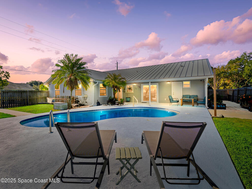 Beautiful Pool Home w/ Key West Charm Feel, situated on a Large Fenced Corner Lot, Providing a Private Oasis Retreat! High Value items on this Home include a New Seamless Metal Roof & Hurricane Impact Windows, offering a lifelong sense of security during Florida's tropical weather. Enjoy an open backyard w/ Sparkling Pool surrounded by a Patio & covered Porch w/ Fans for loungers to relax & abundance of space for entertaining. Low Maintenance Rock Landscaping around the property along with Vinyl Siding, Decorative Shutters, & Screened entry gives this home character. Plenty of Parking for Vehicles, Boats, or RV w/ a Full 2 Car Garage & Secondary Side Driveway. The Interior Features LVP Neutral Wood Flooring Thru Out, Vaulted Ceilings, White Kitchen w/ Sleek Granite Bar, Two Family Room Options & Eateries, Split Floor Plan w/ 2 Guest Bedrooms sharing 1 Updated Bathroom & Spacious Primary w/ Double Closets & Sinks, Tile Shower & its own Access to Outdoors! No HOA & Close to Parks!