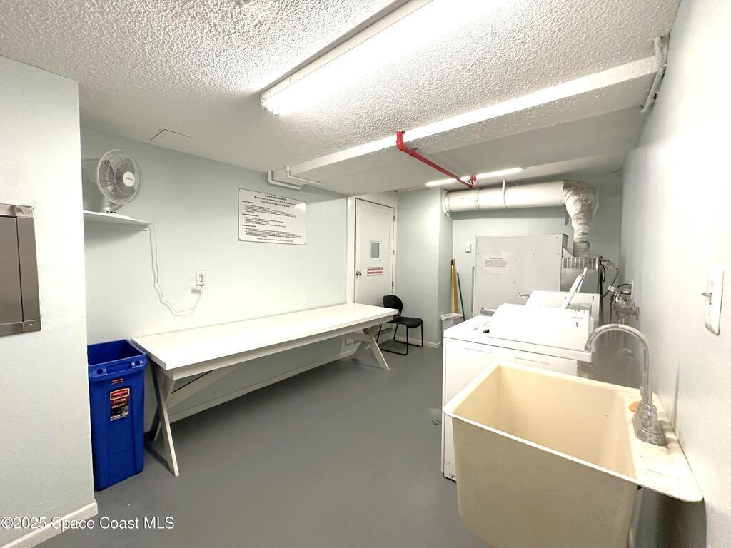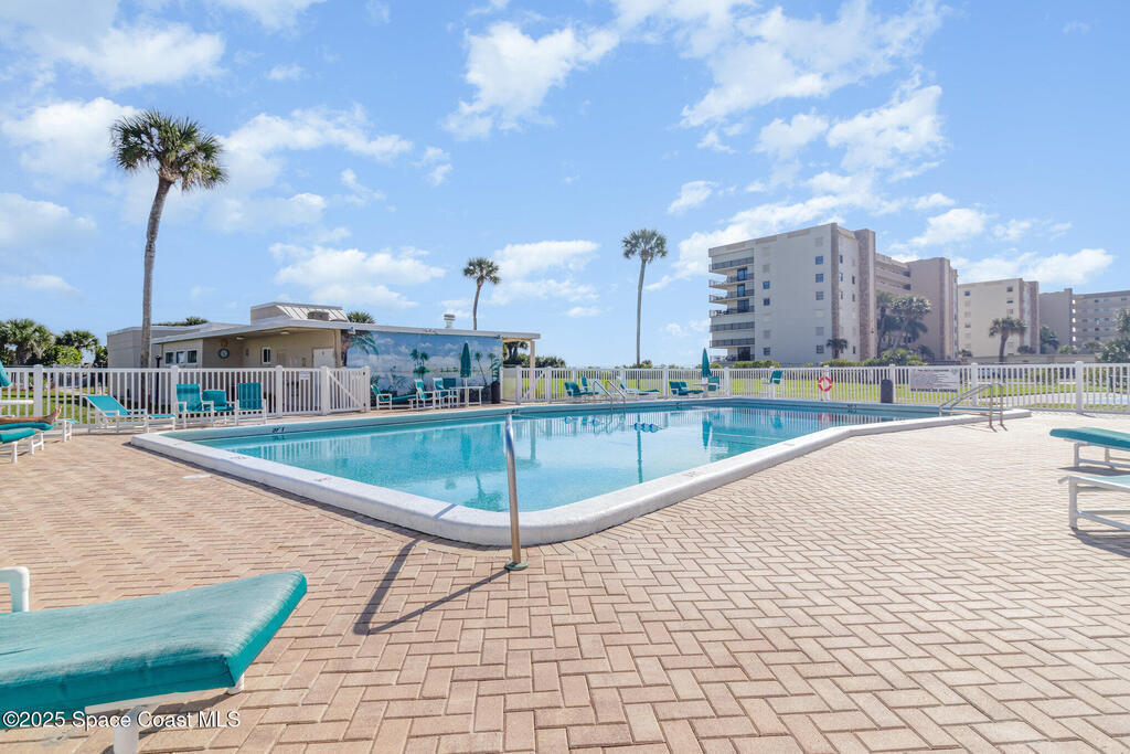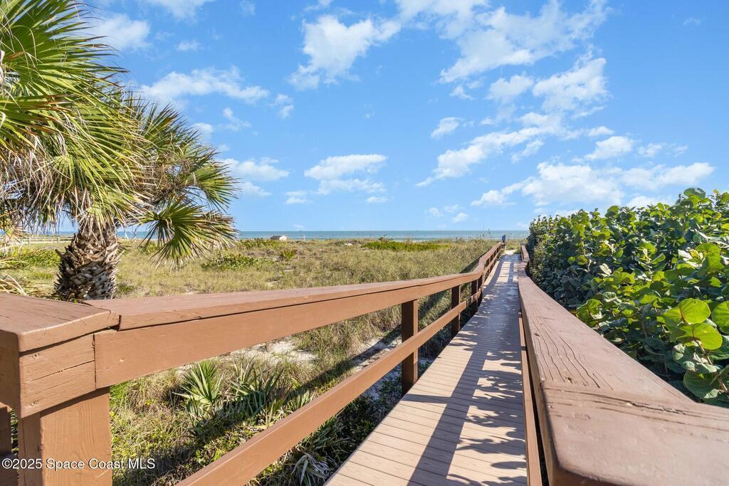 Ocean views from top floor remodeled 2 bed unit in well run Twin Towers. Stunning kitchen was opened up and remodeled in 2023, new wood cabinetry, quartz counters, large farm sink, all stainless appliances including the LG InstaView Knock-Knock Refrigerator. Updated LVP flooring throughout. New fixtures. Interior painted light & bright and fresh for beachside living. New AC 2025! New Electrical panel 2024! Great storage throughout. Primary bedroom with huge walk-in closet. Most of the materials for bathroom remodel have been purchased and convey with unit. Views from balcony overlook the ocean, community amenities and courtyard, and even offer views of the river to the west. Community is active with a clubhouse, community kitchen, BBQ area, community garden, pool, sauna, pickleball/tennis courts, shuffleboard, car wash, and direct ocean access all behind a gated entrance with on-site management. N Building balconies have already been re-done by HOA. Right in the heart of Cocoa Beach!