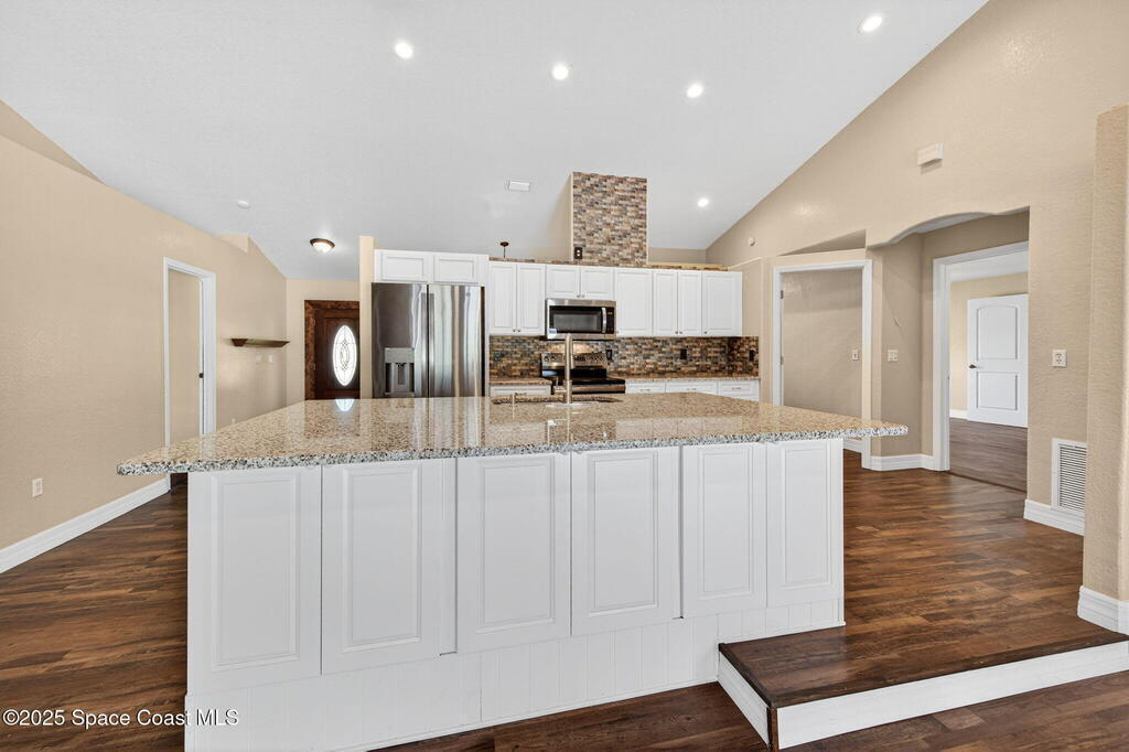 Breakfast Bar , Ceiling Fan(s) , Entrance Foyer , Guest Suite , In-Law Floorplan , Kitchen Island , Open Floorplan , Primary Bathroom - Tub with Shower , Split Bedrooms , Vaulted Ceiling(s)