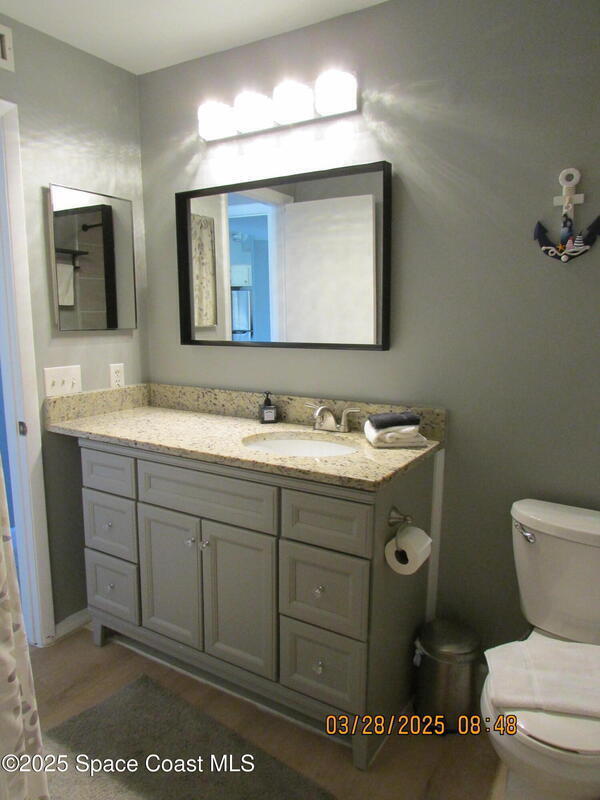 Beach resort style living! Short walks or riding to the ocean or river, restaurants, and shopping. 2 bedrooms 2 bathrooms on 2nd floor. Enjoy breeze on the covered balcony overlooking pond in the back. Granite countertop in kitchen with updated both bathrooms, luxury vinyl flooring. Community offers heated pool, hot tub, cabana, & fitness center. An ideal location for your primary residence, vacation getaways, investment home for both long and short terms such as Airbnb. Furniture is not part of sale and is available for sale. The property is also listed for long-term and short-term rental.