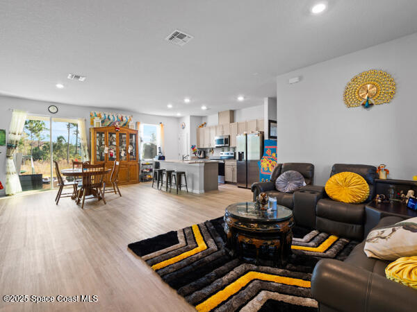 Better than new and barely lived in, this move-in-ready home offers the feel of new construction without the wait. Built less than a year ago, this energy-efficient property features an open-concept floor plan, modern finishes, and abundant natural light throughout. The designer kitchen is ideal for entertaining, complete with contemporary cabinetry, sleek countertops, and seamless flow into the living and dining areas. The private primary suite serves as a relaxing retreat with a spa-inspired bathroom and generous closet space. Enjoy low-maintenance living, smart layout design, and peace of mind with newer systems and construction. Located in a desirable Palm Bay neighborhood with easy access to shopping, dining, schools, and major roadways. Perfect for buyers searching for a newer home, modern style, and long-term value. Why wait to build when this like-new home is available now?