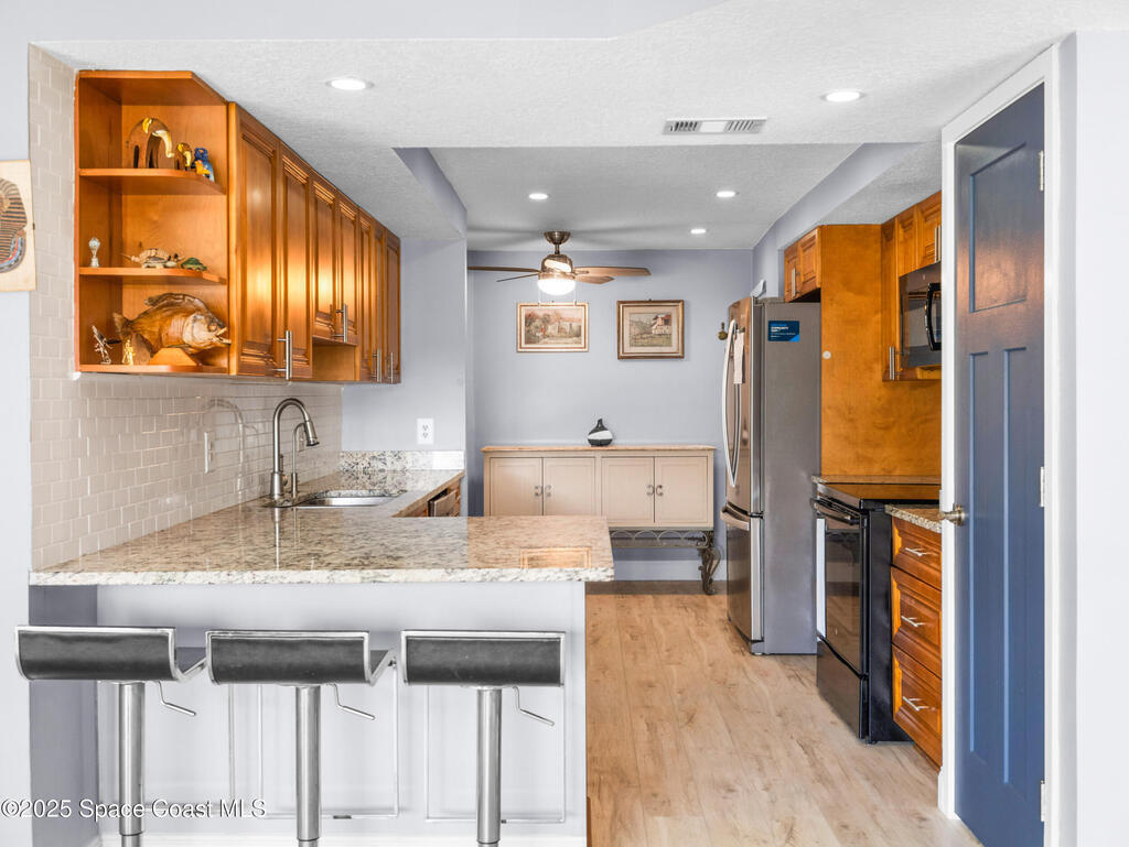 Gorgeous 3-bed, 2-bath condo in Palm Bay with stunning Indian River views from a private balcony. This remodeled 1,480 square ft home features vinyl plank flooring, granite kitchen countertops, rich cabinetry, and a cool coastal color palette. The spacious owners suite includes an upgraded bath with double sinks. New impact windows and a tankless water heater add comfort and efficiency. Enjoy a DEEDED boat slip with a brand new lift, boater's dream! Also includes 1-car garage and extra parking. Community perks: heated pool, spa, clubhouse, fitness center, tennis court, marina, and fishing pier. Perfect for snowbirds, boat lovers, and retirees looking for relaxed waterfront living near everything Palm Bay has to offer.