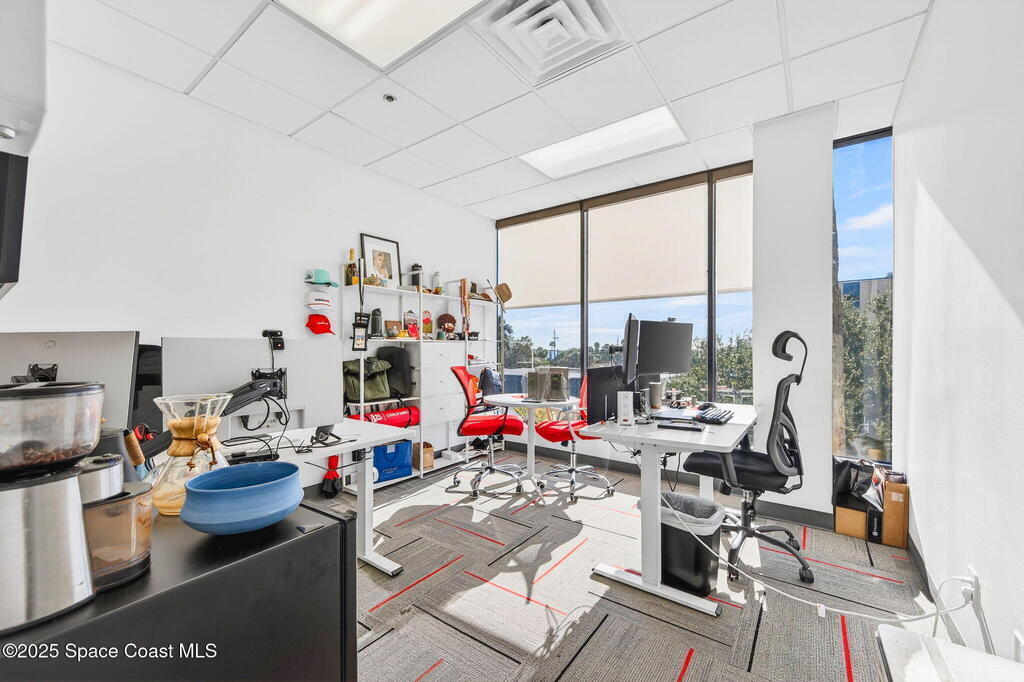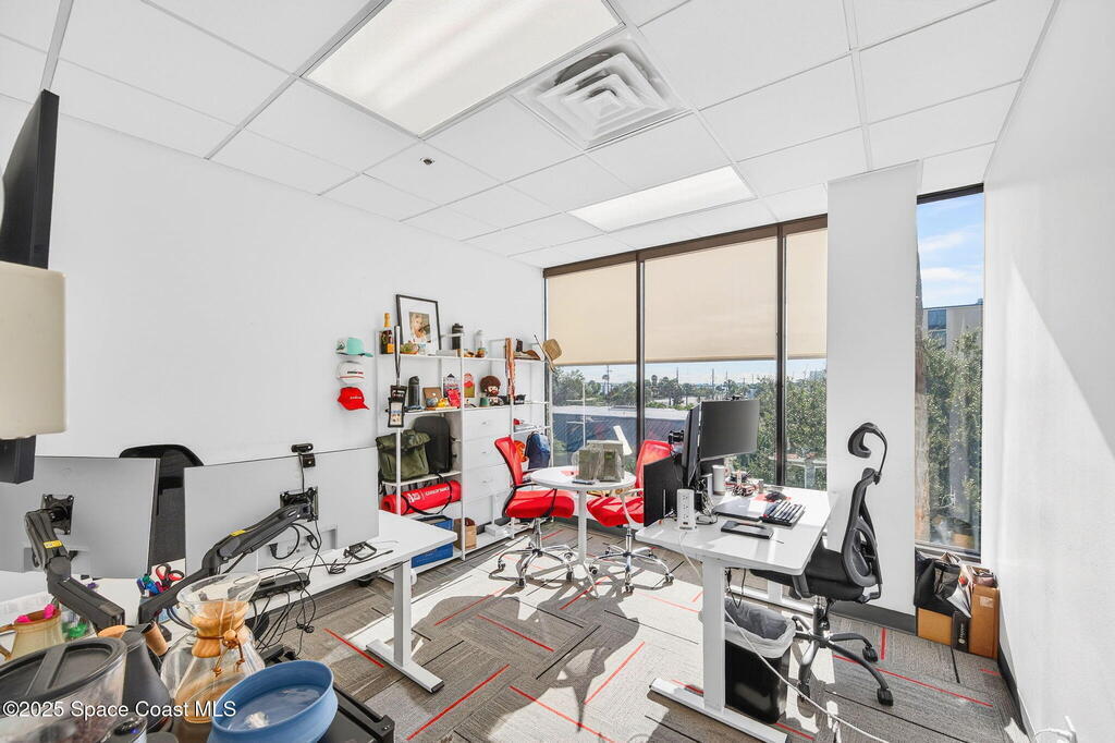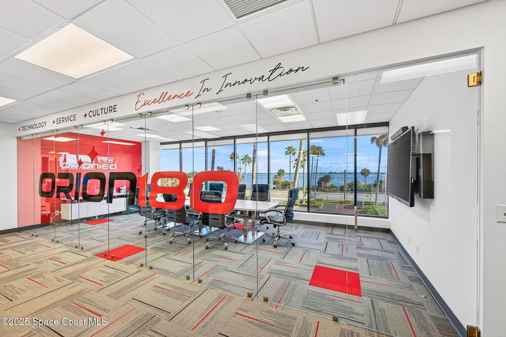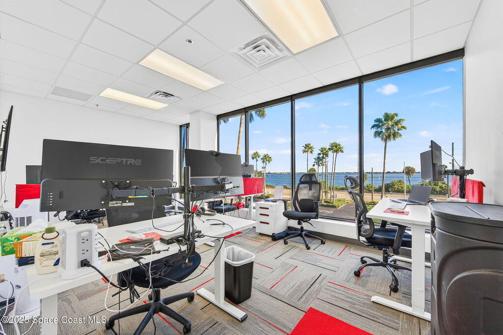 Prime 3rd-floor, 4,628 sq ft suite with river views in Class A Riverside Center. Features a glass-enclosed conference room overlooking the water, two large bullpens, four river-view offices, two additional offices, a full kitchen break room, and two secured storage rooms, with access to common-area restrooms. Close to the airport and major employers, with high visibility on Harbor City Blvd (32,000 cars/day). All offices include new solar shades, and the property offers ample parking.