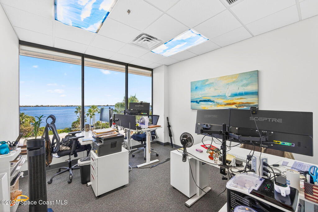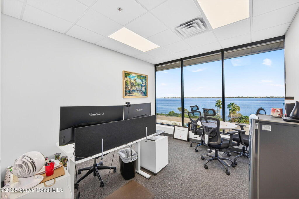 5th-floor, 2,771 sq ft suite with four river-view offices, three additional offices, two large bullpens, a dedicated conference room, a break room with full refrigerator, and a secured storage room. Includes access to common-area restrooms. Close to the airport and major employers, with strong visibility on Harbor City Blvd (32,000 cars/day). All offices include new solar shades, and the property offers ample parking.