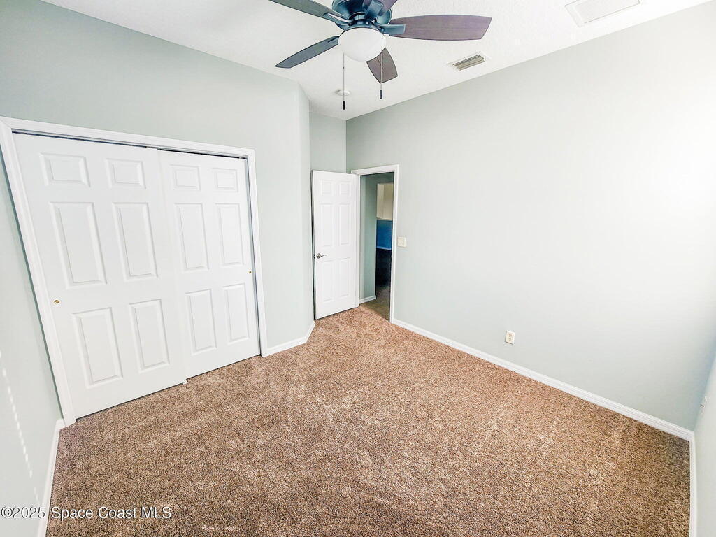 This 3-bedroom, 2-bath home with a 2-car garage is located in northwest Palm Bay. The interior includes new carpet and wood-look vinyl flooring, along with fresh paint throughout. The home is move-in ready and offers a practical layout. Conveniently located near local amenities, it provides easy access to schools, shopping, and main roads. No smoking. Pets considered.