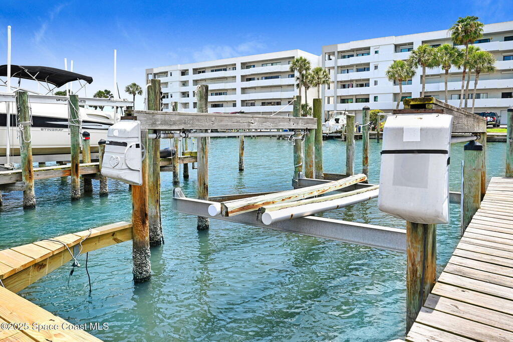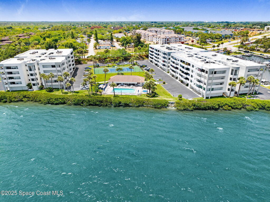 DEEDED Boat Slip w/unit in this fabulous waterfront community with Private Marina. The amenities are amazing! Salt water Heated Pool and Hot Tub. Pool is chilled in the summer. Beautiful clubhouse with full kitchen, restrooms, showers and sauna. Fitness room overlooking private marina. Tennis and pickleball courts. Fishing pier & park benches to watch incredible sunrises and wildlife. Enter Atrium with lush foliage to access elevator or stairs. Unit is turnkey w/beautiful furnishings, open floor plan & huge private balcony Oversized sliders from living/dining area & two bedrooms w/direct access to balcony. Split floor plan! MBR w/private bathroom suite & custom closets. Guest bath w/tub & shower. Beautiful kitchen with custom cabinetry and granite counters. Lots of closets & huge private storage area in garage. Additional assigned parking & plenty of guest parking available. Boat slip can accommodate 32 ft vessel. Electric & water at docks. Lease/purchase or rent/option available!