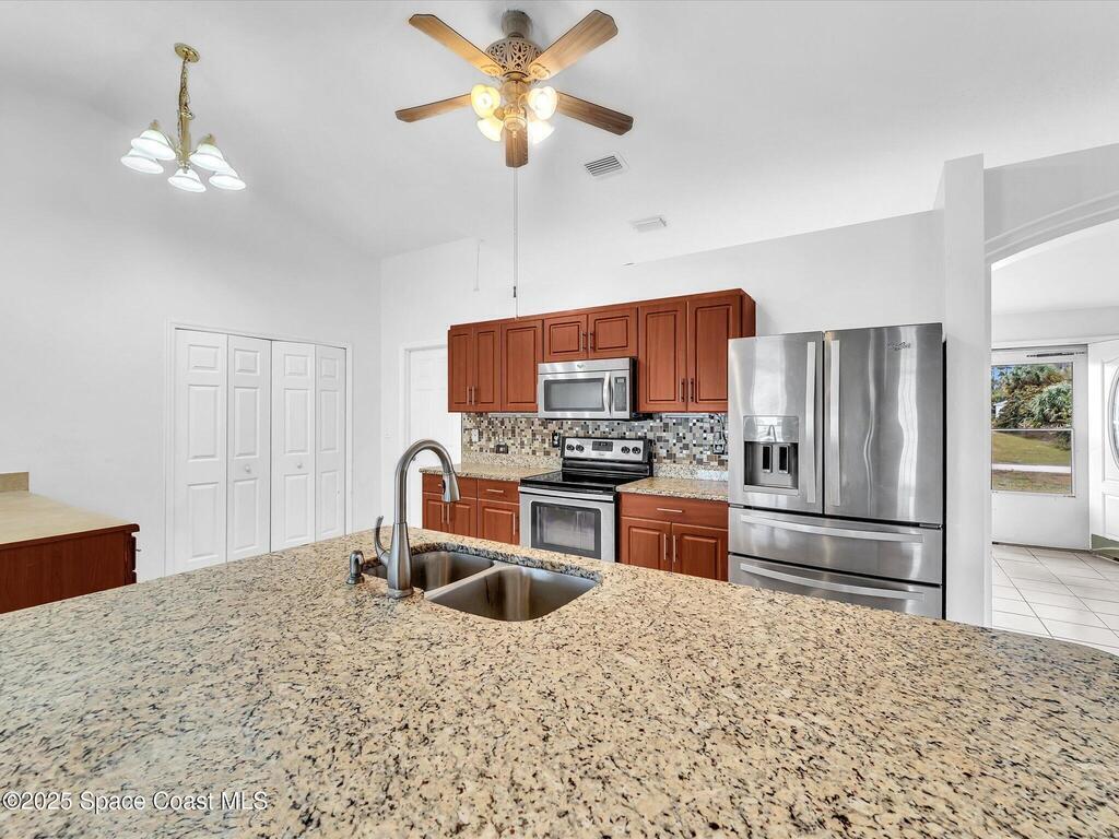 Imagine owning a stunning single-family home on a spacious .23 acre lot with no HOA, featuring granite countertops, SS appliances, and a beautiful screened pool with a new pump perfect for endless summer days, all wrapped up in a split floor plan with 2020 sqft of living space 2 bed and a Den. Almost new roof 2022 and water heater, beautiful tile flooring. Bring your RV, Boat, close to shopping, dining and schools. Investor welcome. Don't miss this opportunity. Come fall in love the second you walk in with the spacious, light and bright home.